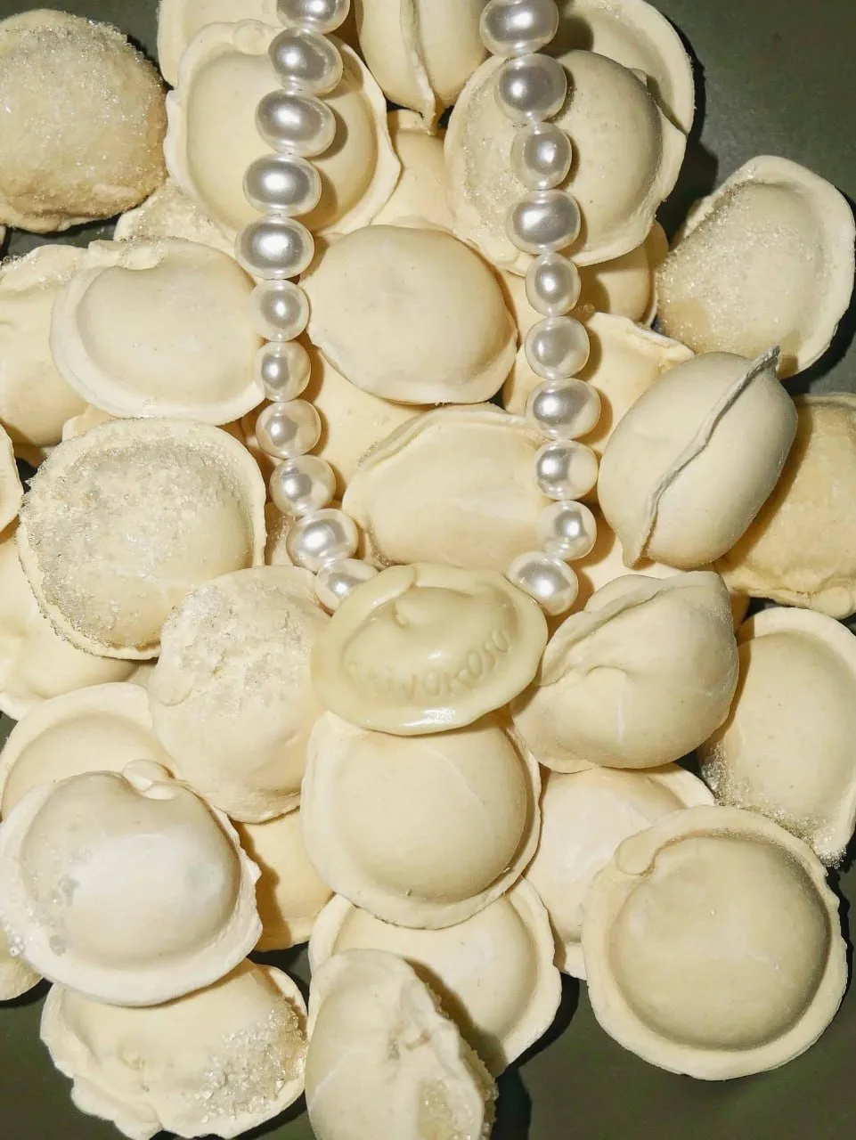 Жемчужный чокер Krivokoso для любителей пельмешек. Идеальное украшение для любого новогоднего наряда обойдется в 6300 рублей.
