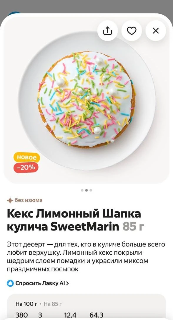 В Лавке теперь продают глазированную верхушку от кулича без самого кулича. Доставка пока есть не везде, но счастливчики, которые уже попробовали шапочку, остались довольны.