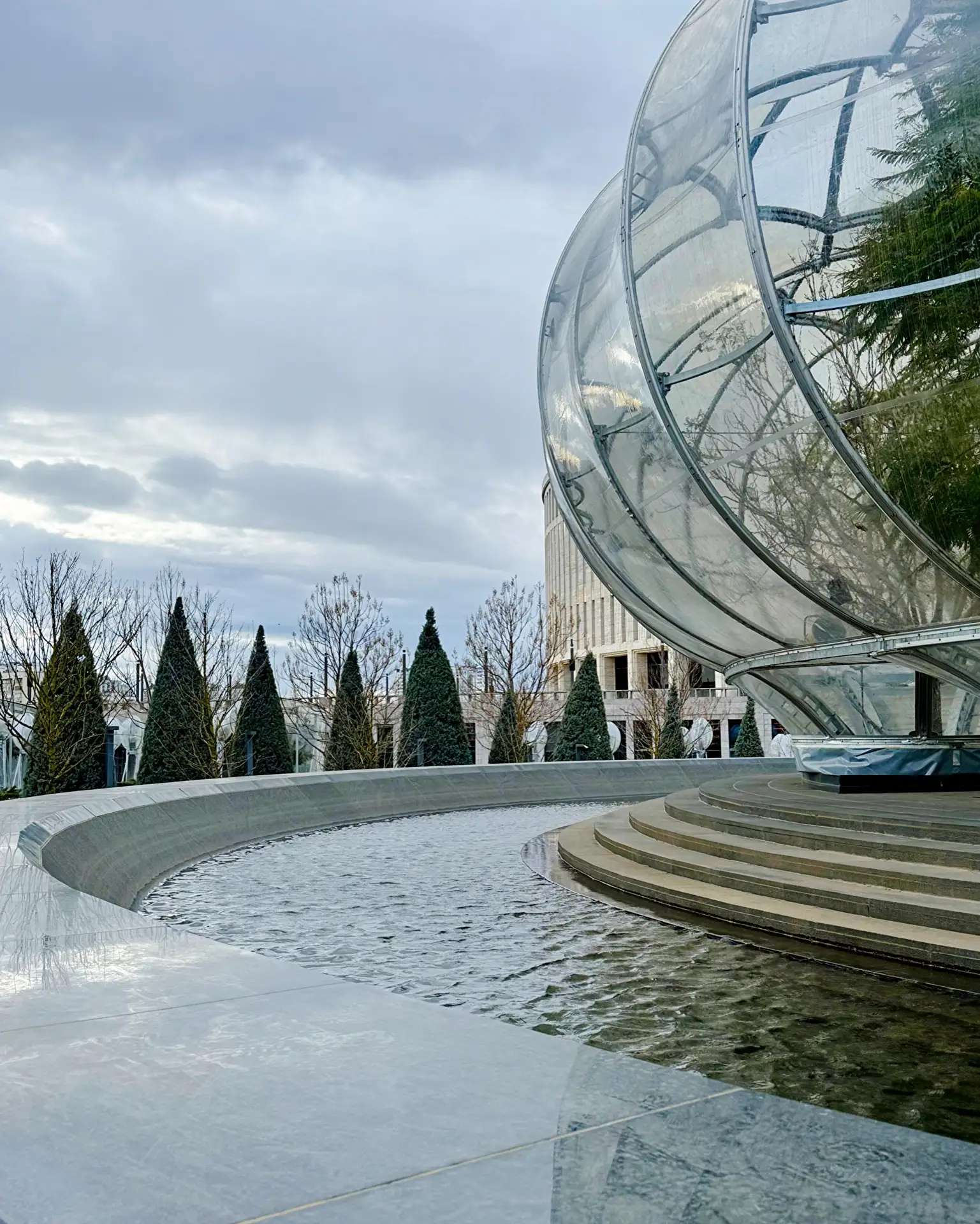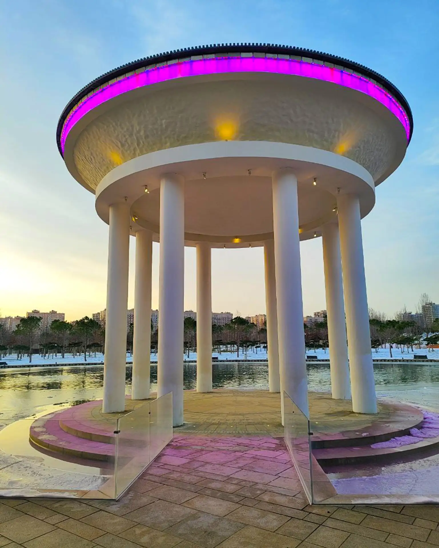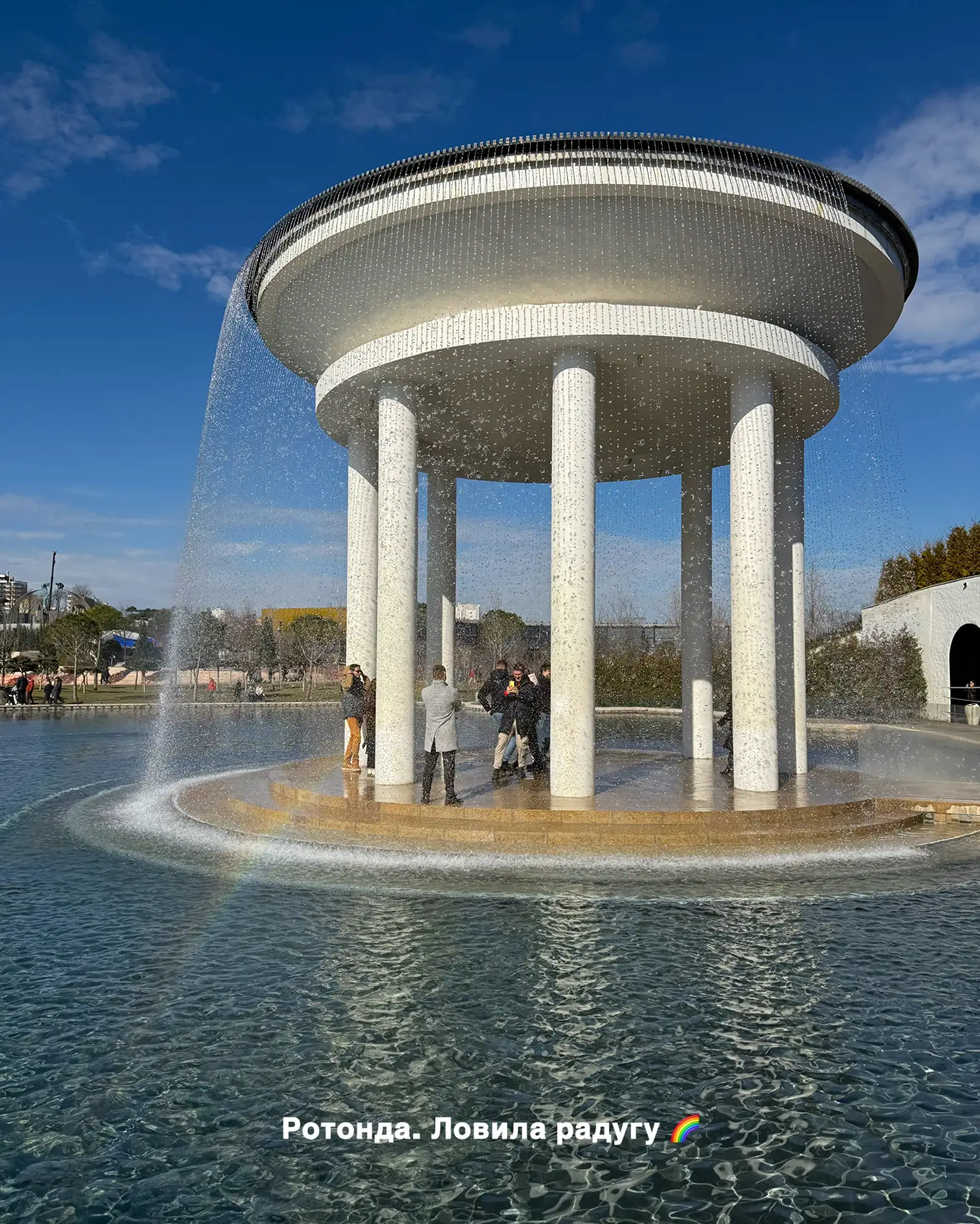 ✍️ С купола ротонды спадают струи воды, подсвечиваемые разноцветными огнями в темное время суток, создавая романтическую атмосферу и идеальное место для фото
