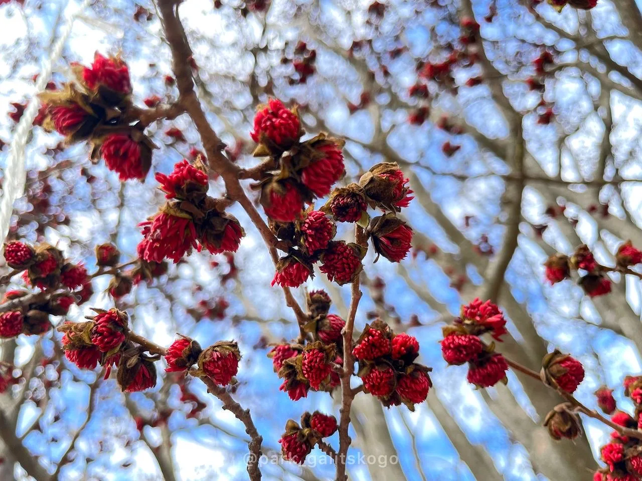 В каждом месяце в парке что-то да цветёт 🌸 Вот и на январь-февраль выпало цветение Парротии 🌳 Гуляя в парке, обратите внимание... начинается цветение