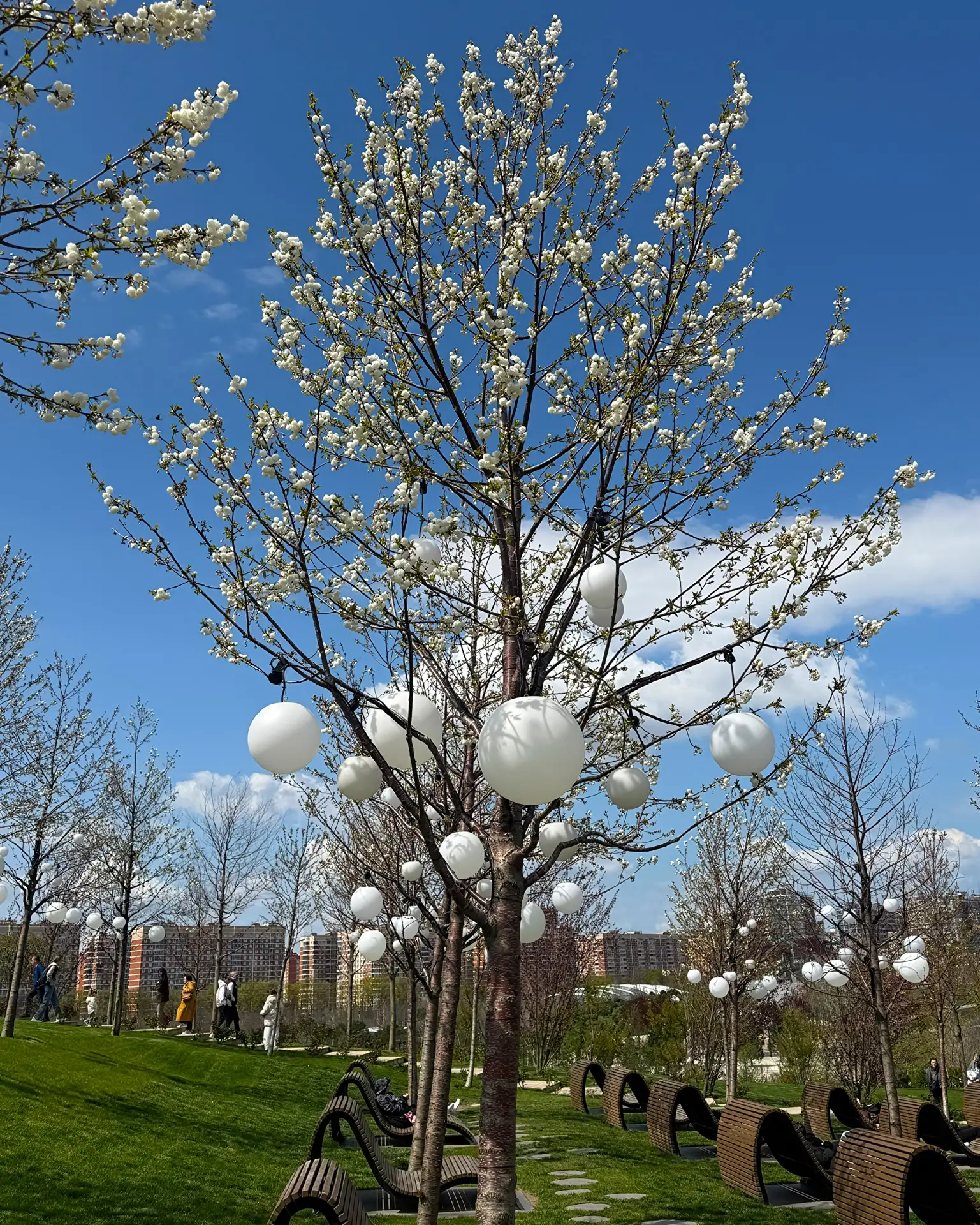 Выбирайте, чем сегодня любуемся в Ромбовидной площади? Яблонькой или облаками?