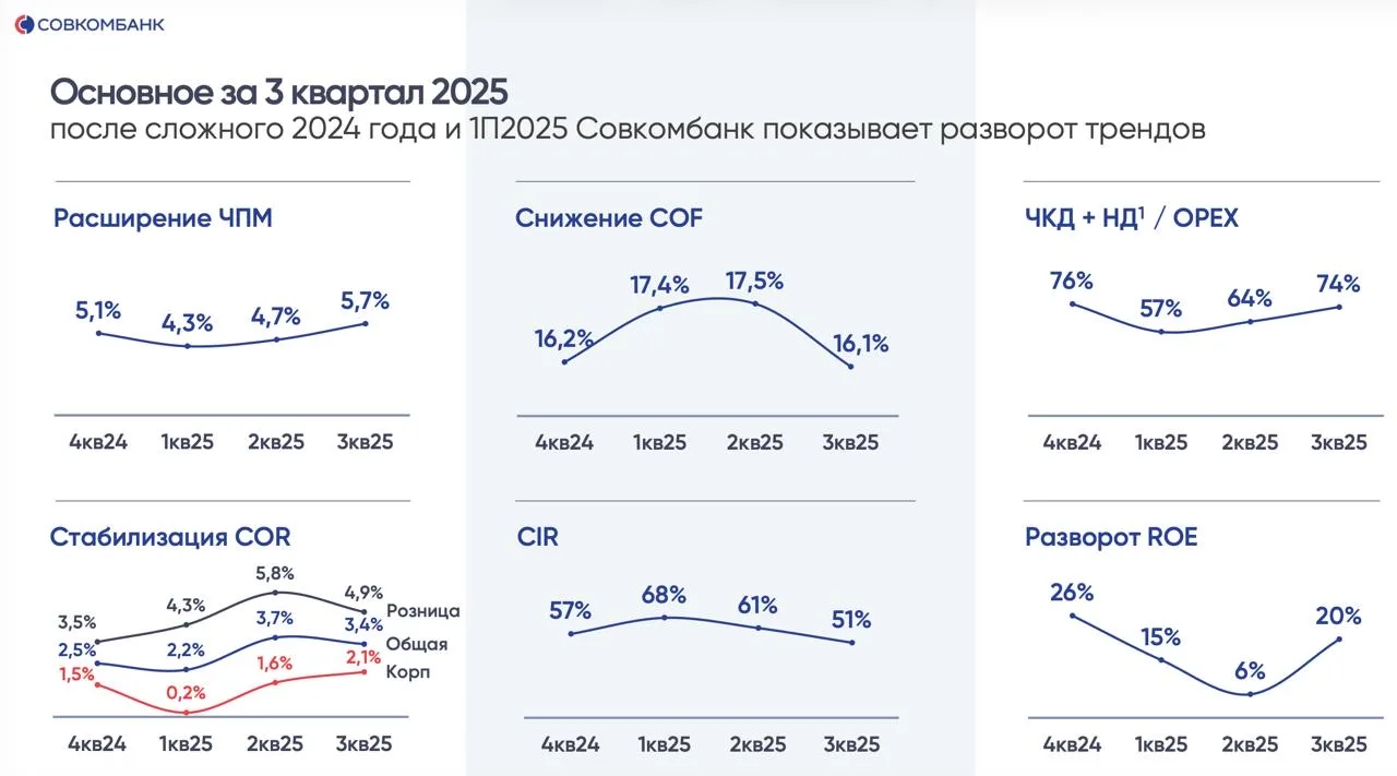 При этом чистые комиссионные доходы снизились на 9% год к году - это самое сильное падение среди всех публичных банков. Никаких прорывов в экосистеме, никаких новых тарифов, только стагнация. Это тревожный сигнал, что банк не может нащупать точки роста вне кредитования.