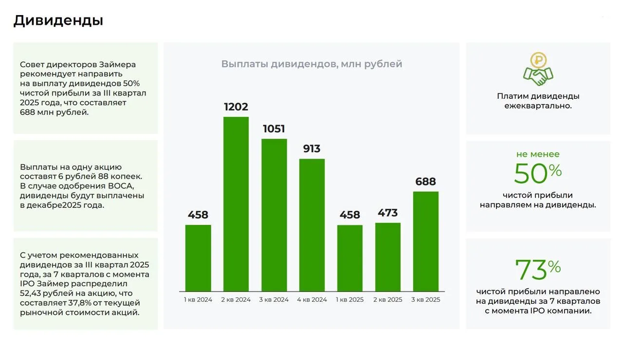 Но меня больше интересует сохранение высокого показателя средней годовой рентабельности собственного капитала (RoATE) на уровне 25,4%, коэффициент достаточности капитала (solvency ratio) в 146% и выплаты дивидендов. Так, по итогам 9 месяцев акционеры компании утвердили дивиденды в размере 4,1 рубля на акцию, что ориентирует нас на 4,1% доходности.