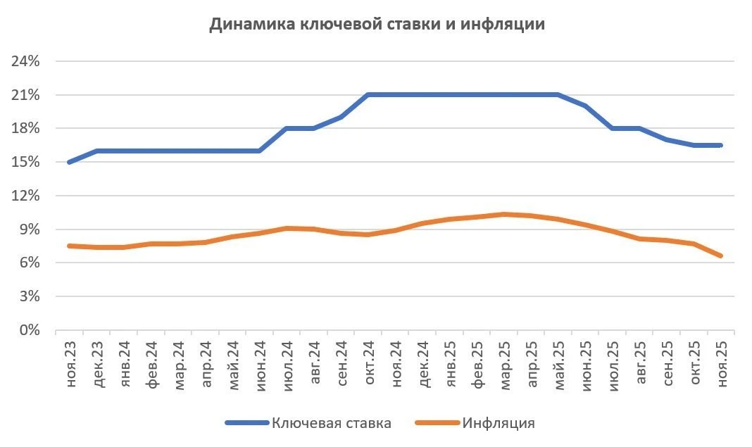📉 Росстат сообщил о снижении инфляции до 6,6%, что открывает Центробанку возможность снизить ключевую ставку на заседании 19 декабря. Формально регулятор может увеличить шаг и снизить ставку больше чем на 0,5 п.п., но ЦБ постоянно подчёркивает осторожность, что снижает шансы на такой исход.