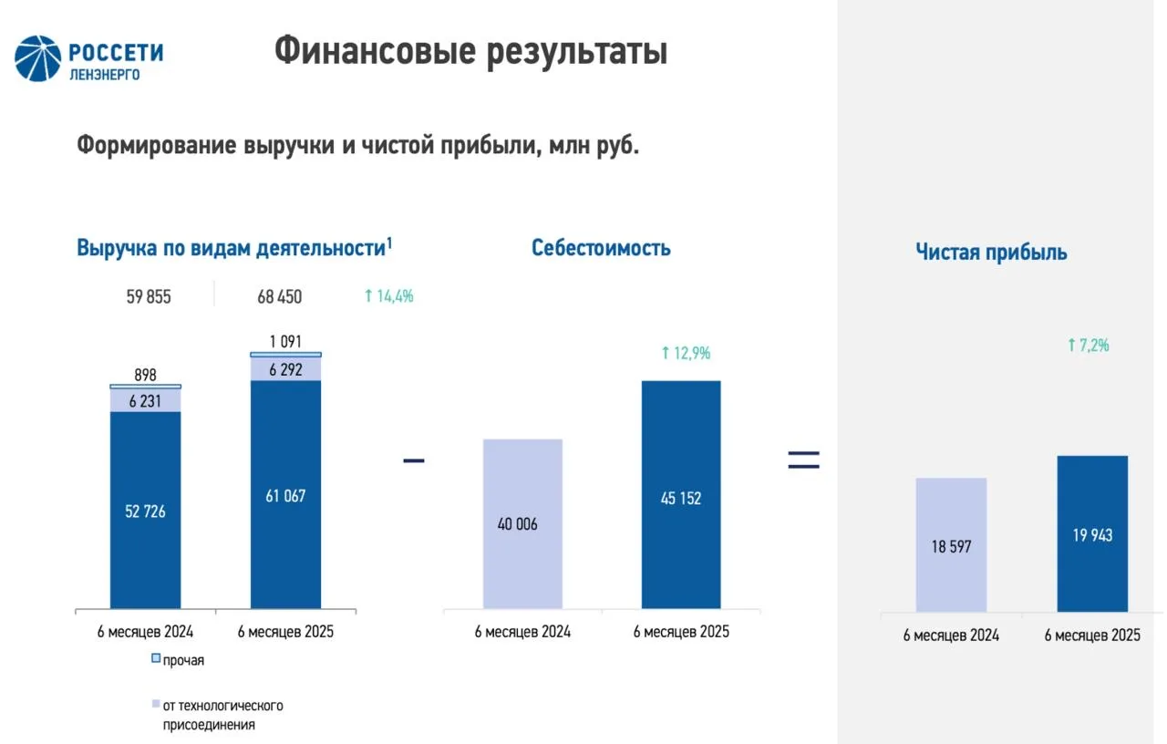 🔋 Итак, выручка Россети Ленэнерго за отчетный период выросла на 14,4% до 68,5 млрд рублей. Доходы от услуг по передаче электроэнергии в основном пушат рост тарифных ставок, а также изменение структуры полезного отпуска по группам потребителей. Как и раньше, компания выглядит устойчиво по выручке, а что с расходной частью?