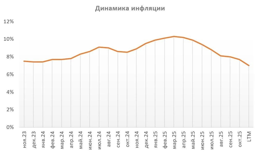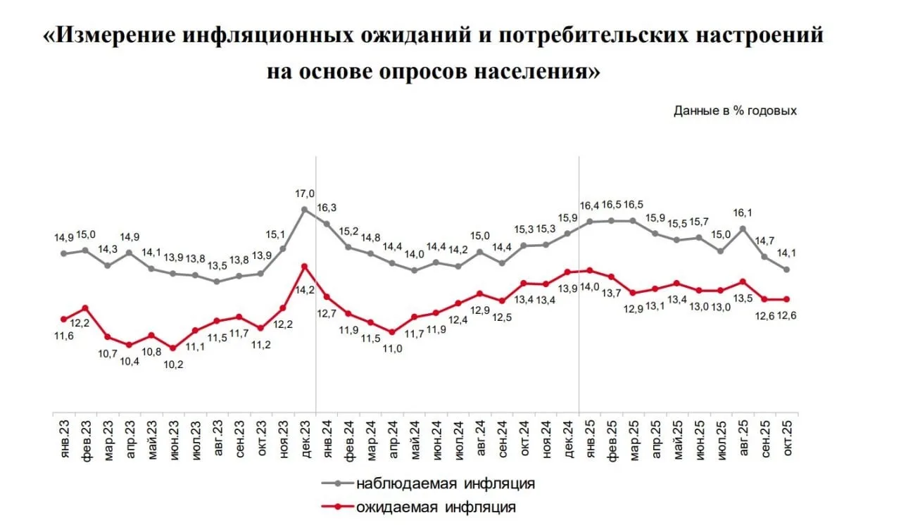 📊 Накануне Росстат сообщил о росте недельной инфляции до 0,22%, что кажется значительной цифрой. Однако значимую роль в этом росте сыграл бензоколлапс, вызванным атаками беспилотников на нефтеперерабатывающие заводы. Параллельно инфляционные ожидания населения в октябре остались на уровне 12,6%, что говорит о некоторой стабильности.