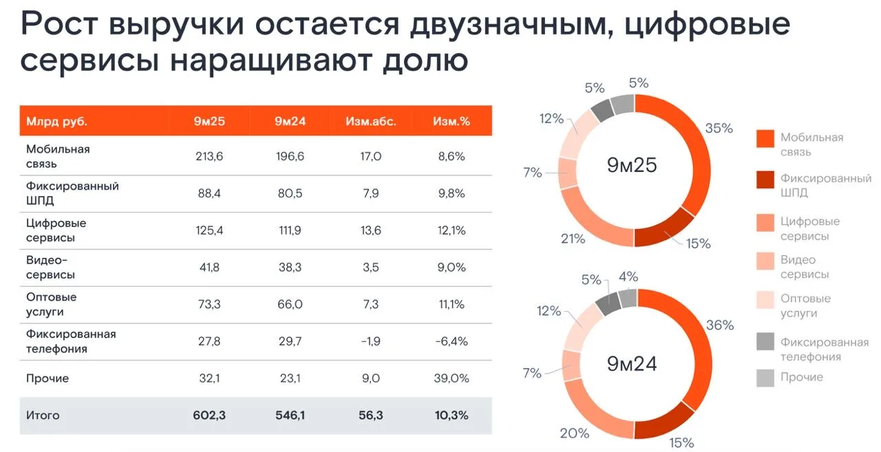 Сегодня у меня на столе отчёт по МСФО компании МТС за 9 месяцев 2025 года. На первый взгляд всё неплохо - выручка и OIBDA растут, прибыль за 3 квартал подскочила в 6 раз. Однако стоит копнуть чуть глубже и блеск превращается в дымовую завесу. Давайте со всем этим разбираться подробнее.