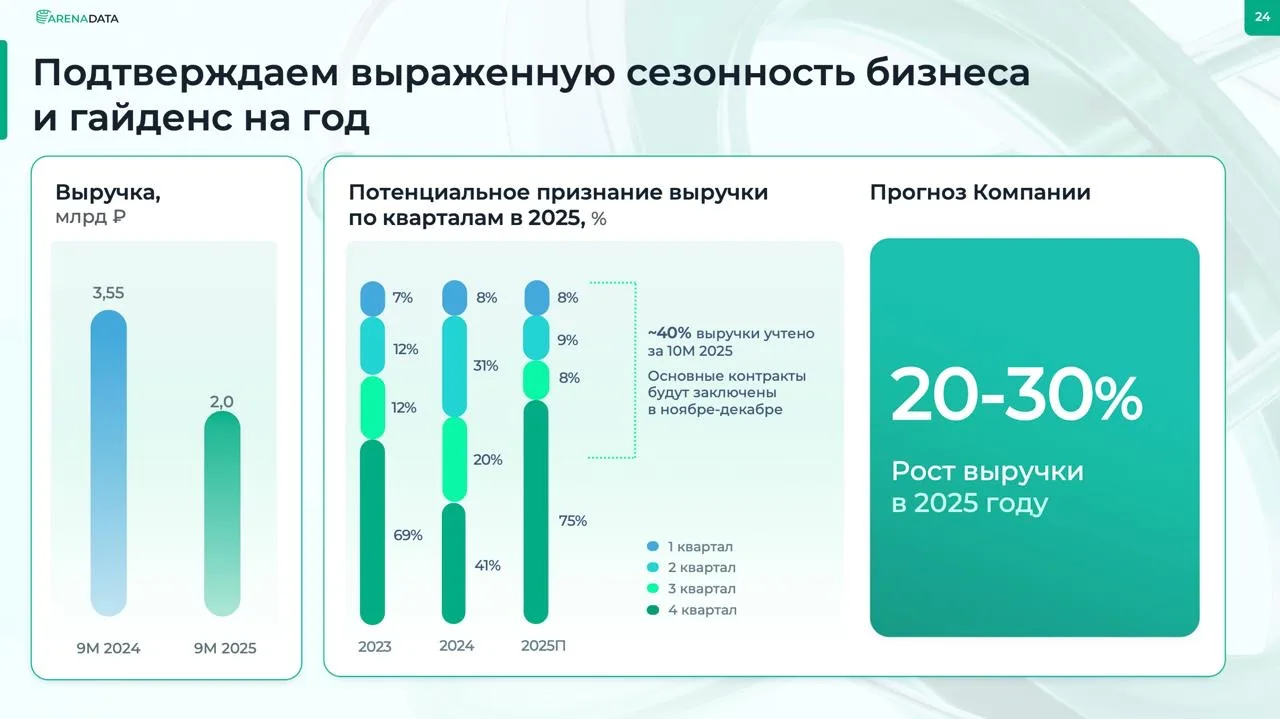 📊 У Базиса интересная бизнес-модель, где около половины доходов приходится на рекуррентную выручку. Это обеспечивает стабильный денежный поток и позволяет сгладить сезонность в бизнесе. По итогам девяти месяцев компания показала сильный рост чистой прибыли, в то время как многие представители ИТ-сектора завершили отчётный период с убытком.