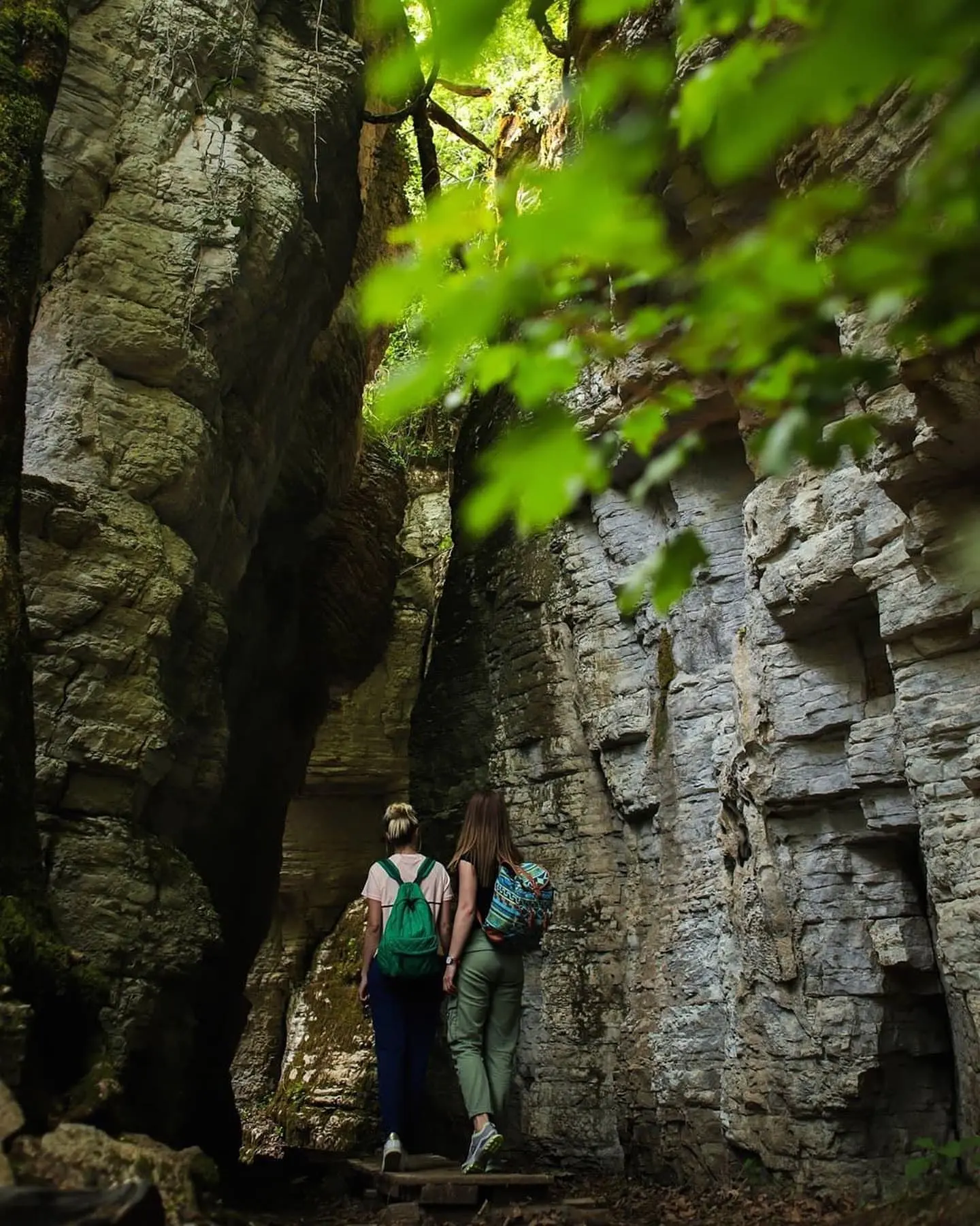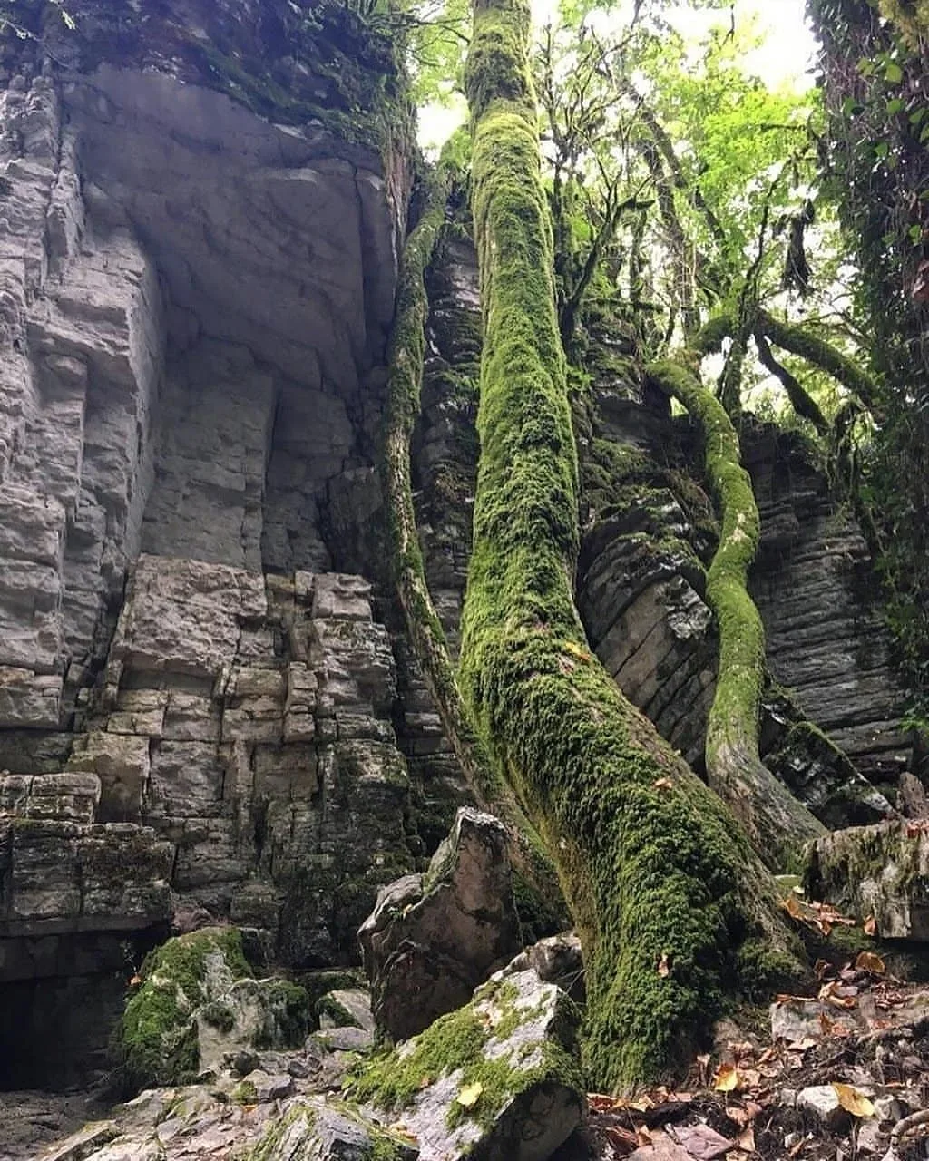 Это удивительное место сумело объединить самшитовые леса и природные источники в нечто по-настоящему великолепное и величественное. Каньон реки Псахо делится на две части, каждая из которых имеет свои особенности. По Мокрому каньону всё ещё течёт река, отсюда и происходит такое название. Прогуливаясь по нему, наслаждаешься прекрасным видом горной реки, плавно уходящей вглубь самшитового леса. Стоит посетить это место один раз, чтобы запомнить его на всю жизнь.