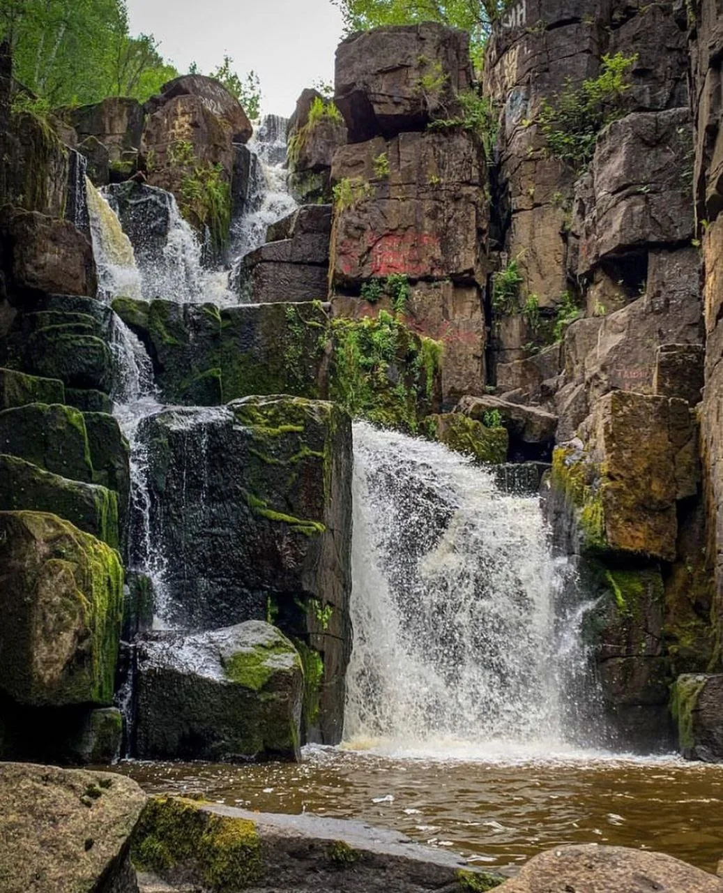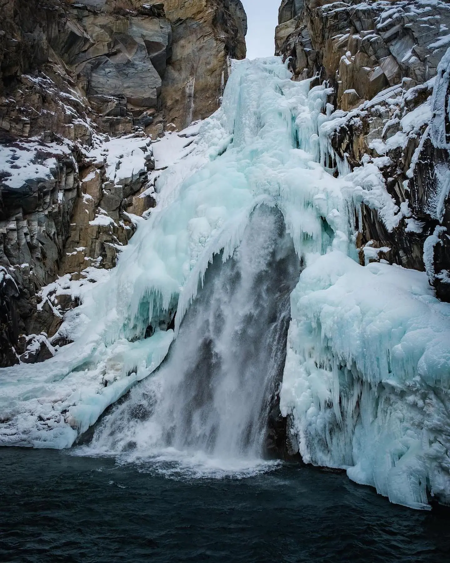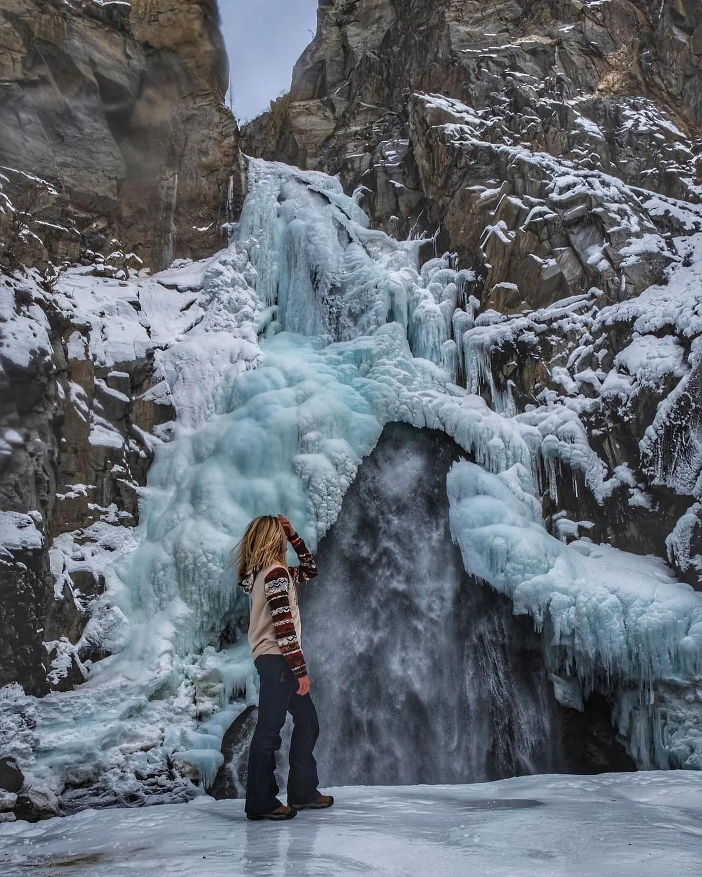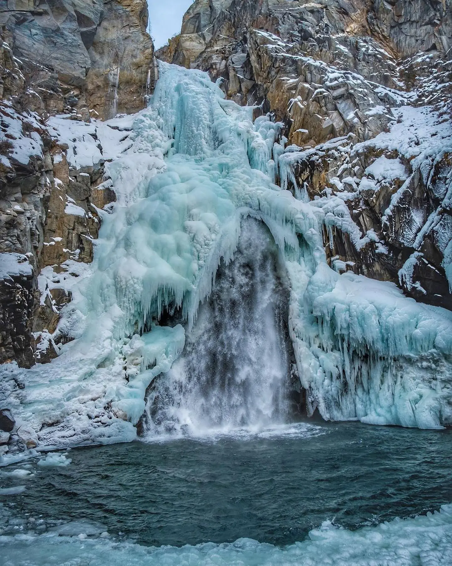 Зимой место впечатляет не меньше, чем летом или весной. В холодное время года водопад частично покрывается ледяной коркой, но под прозрачным панцирем отчётливо видна текущая вода. В это время мощные потоки можно увидеть лишь у подножия каскадов.