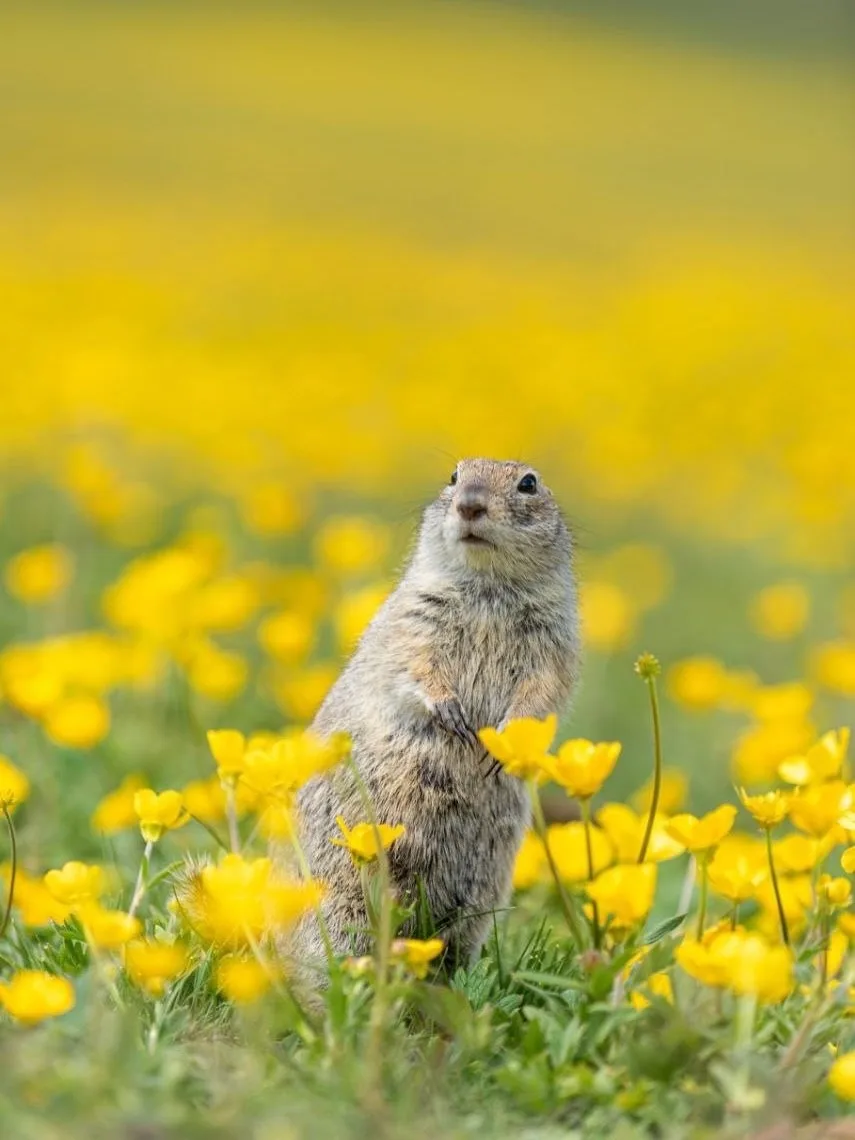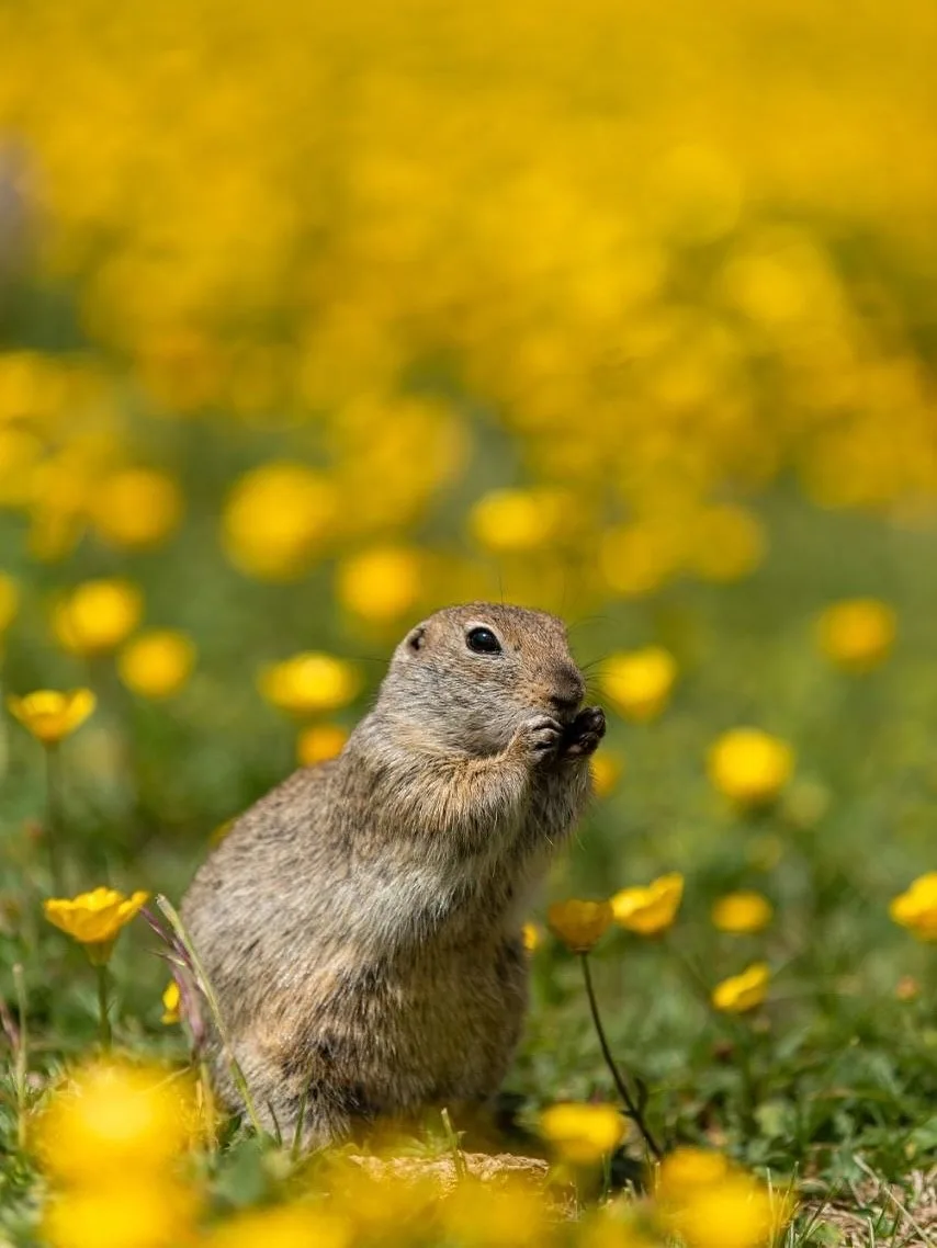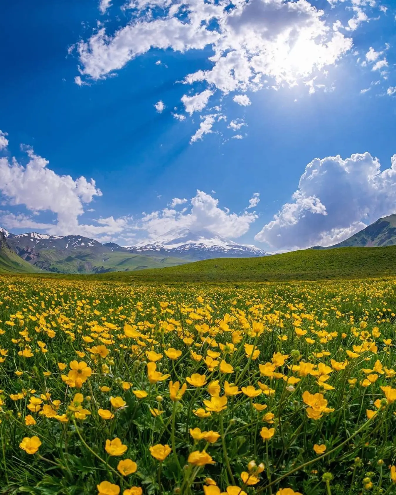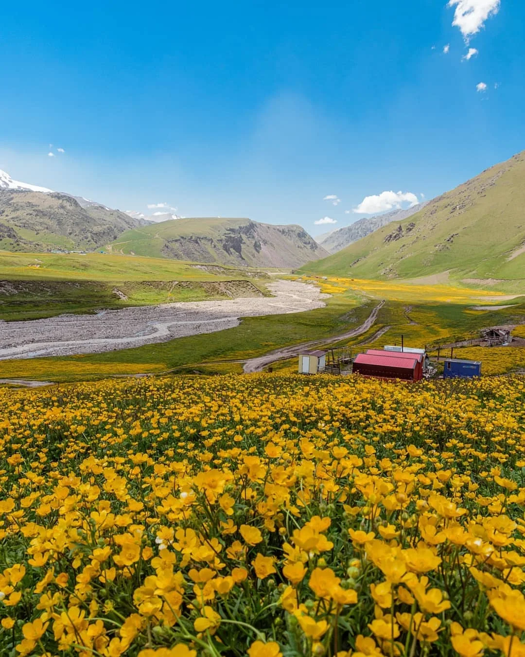 Но в конце весны на первый план выходит цветение лютиков, зрелище, которое хотя бы раз стоит увидеть каждому. Бескрайние золотые поля выглядят особенно впечатляюще под ярким небом Приэльбрусья. В это время лютики цветут повсюду, но самая известная точка для наблюдения — Поляна Эммануэля на северном склоне Эльбруса. Здесь живут почти ручные суслики. Их можно покормить морковью, зёрнами или черешней. Людей они не боятся и спокойно принимают угощения с рук туристов.