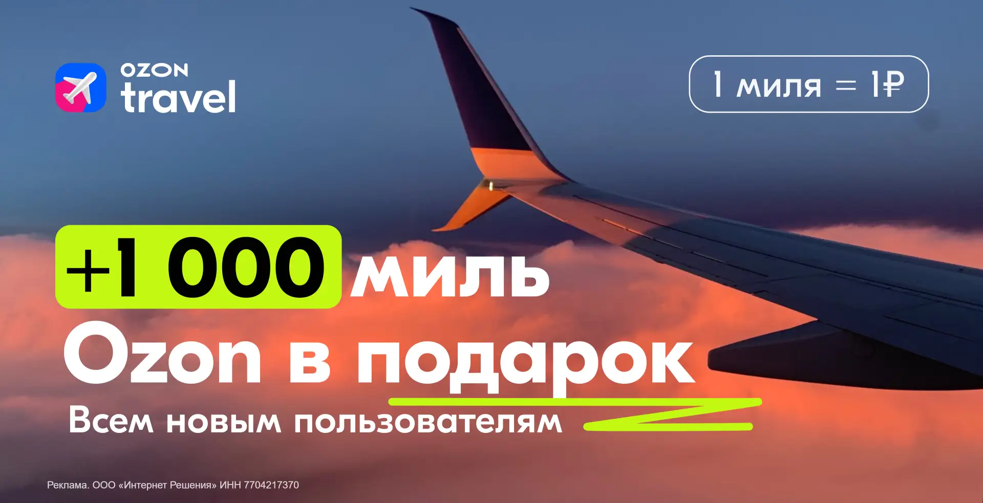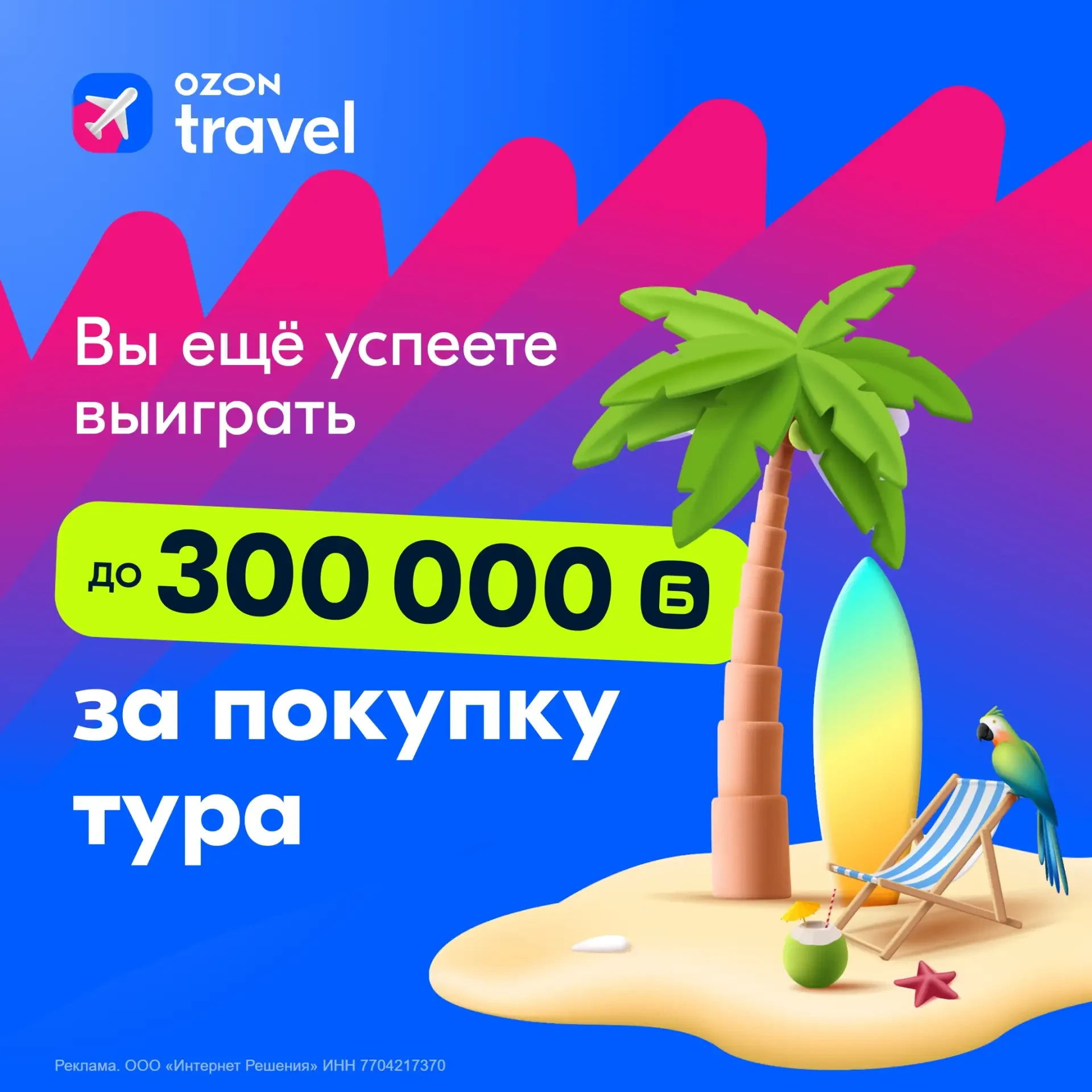 Но вы ещё успеете выиграть до 300 000 Б Ozon за покупку любого тура на Ozon Travel 😱