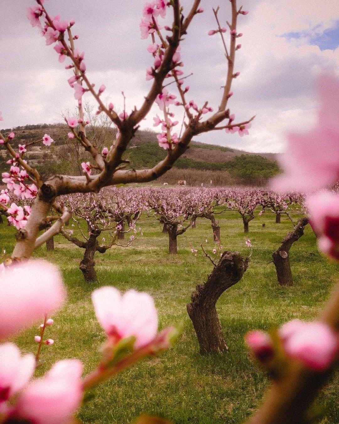 Цветущие персиковые сады покоряют своей красотой и никого не оставляют равнодушными. Несколько таких садов находятся возле села Железнодорожное, по дороге на Севастополь.