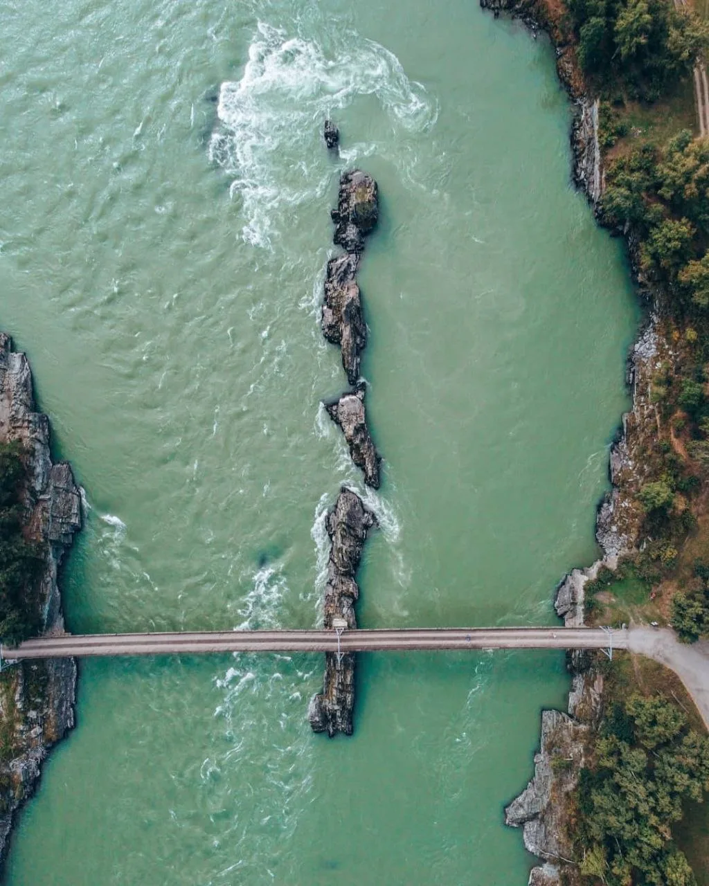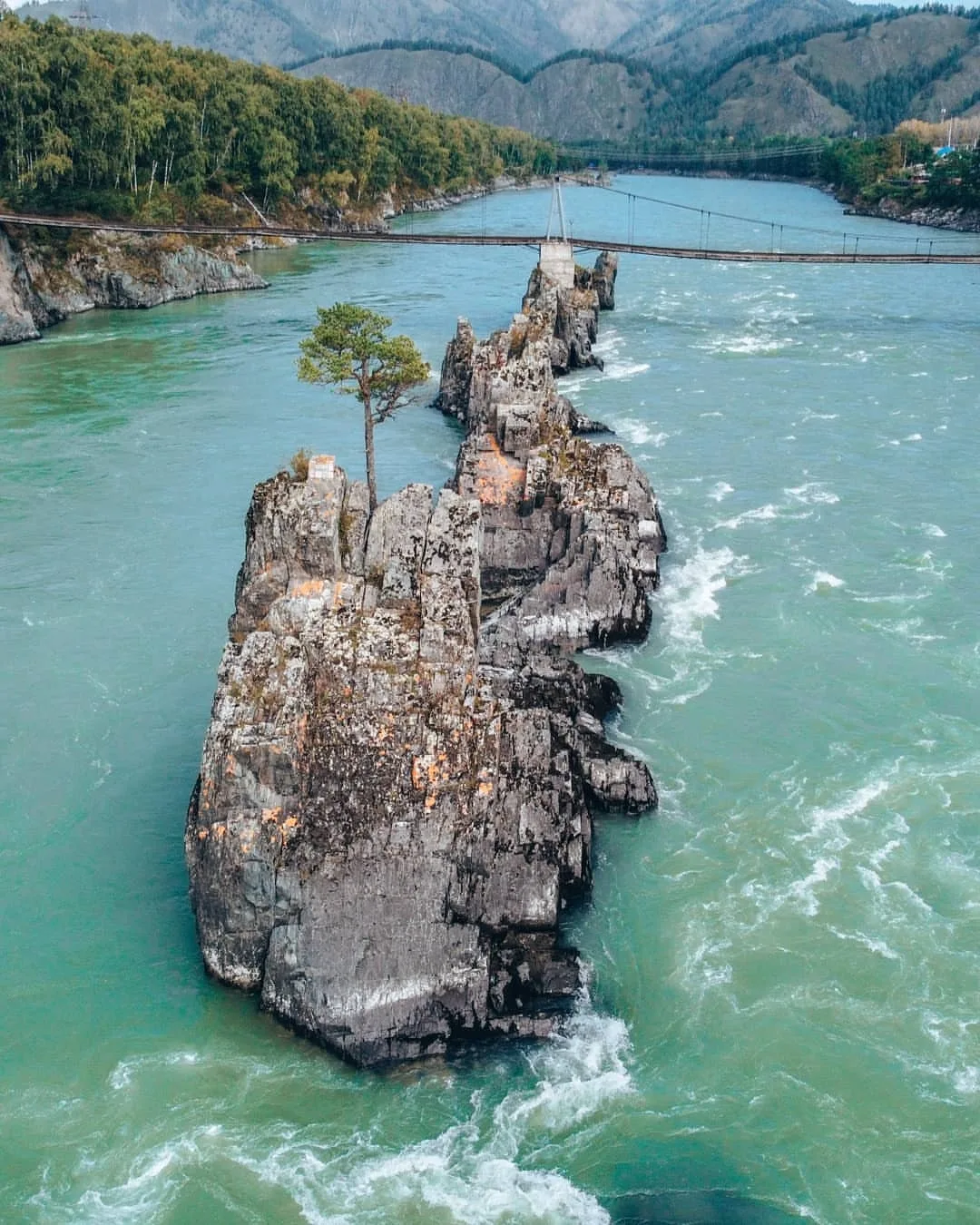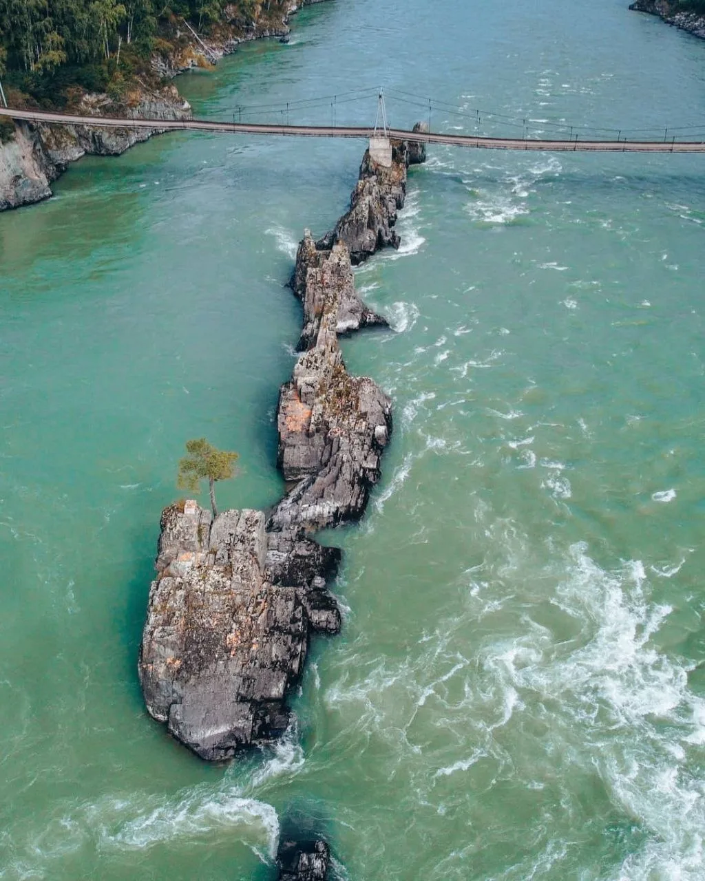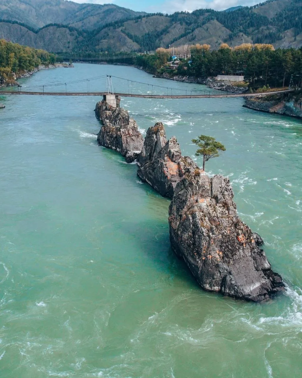 Скалы Зубы Дракона не зря получили своё название, достаточно увидеть их на фото, и всё становится на свои места. Ряд последовательно стоящих скал, будто специально выстроившихся в одну линию, очень напоминает огромные каменные клыки какого-то мифического чудовища. Горная гряда расположена прямо посреди течения реки Катунь, в 9 км от Чемала, и ежегодно привлекает тысячи гостей региона.