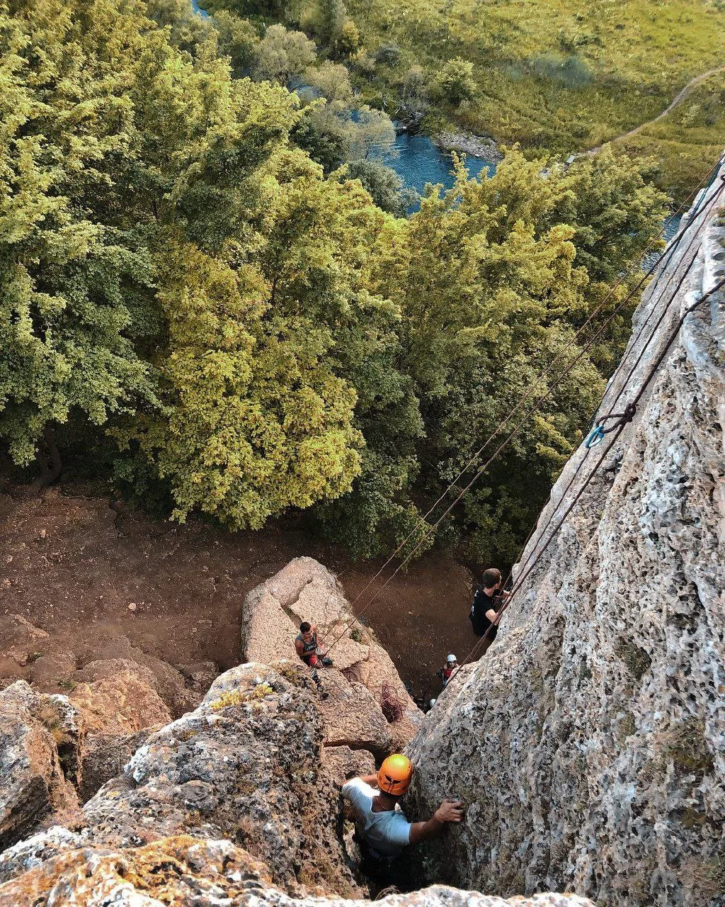 Любителям острых ощущений понравится виа феррата, это 300-метровая экстрим-тропа, где со страховкой идёшь прямо по краю скалы. Её ширина всего в два шага. В общем место очень впечатляющее и по красоте, и по количеству развлечений.