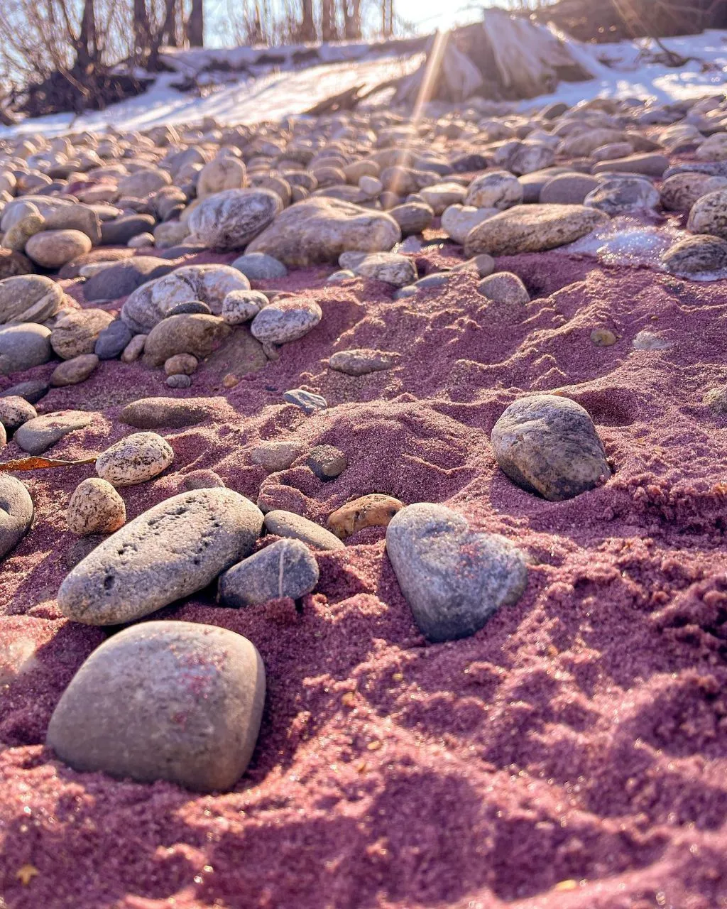 В городе Байкальске на юге озера Байкал расположен один из самых необычных местных пляжей — Гранатовый, или Красные пески. Своё название он приобрёл благодаря красивому бордово-красному оттенку минерального песка.
