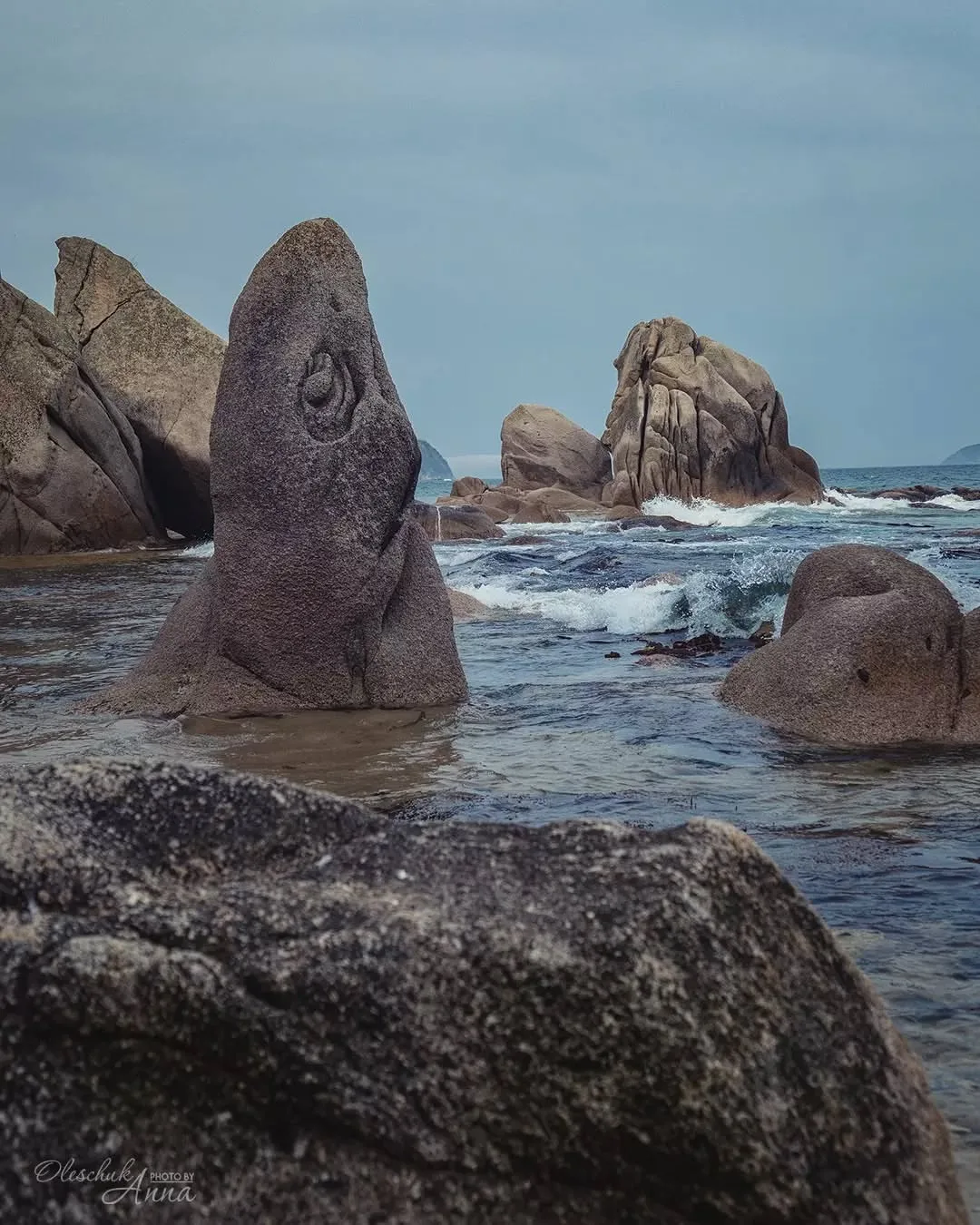 А дальше — берег с арт-объектами. Они стоят прямо у воды и на каменистых выступах: между скалами, над морем, на открытых площадках. Всего объектов около 30, и к ним можно подойти вплотную. Территория в свободном доступе.