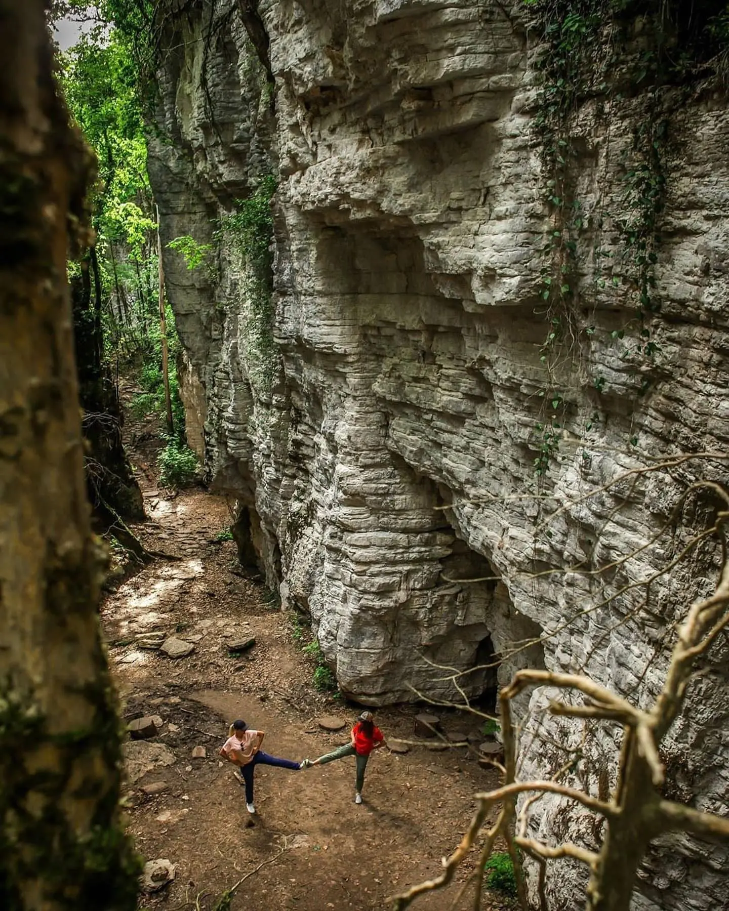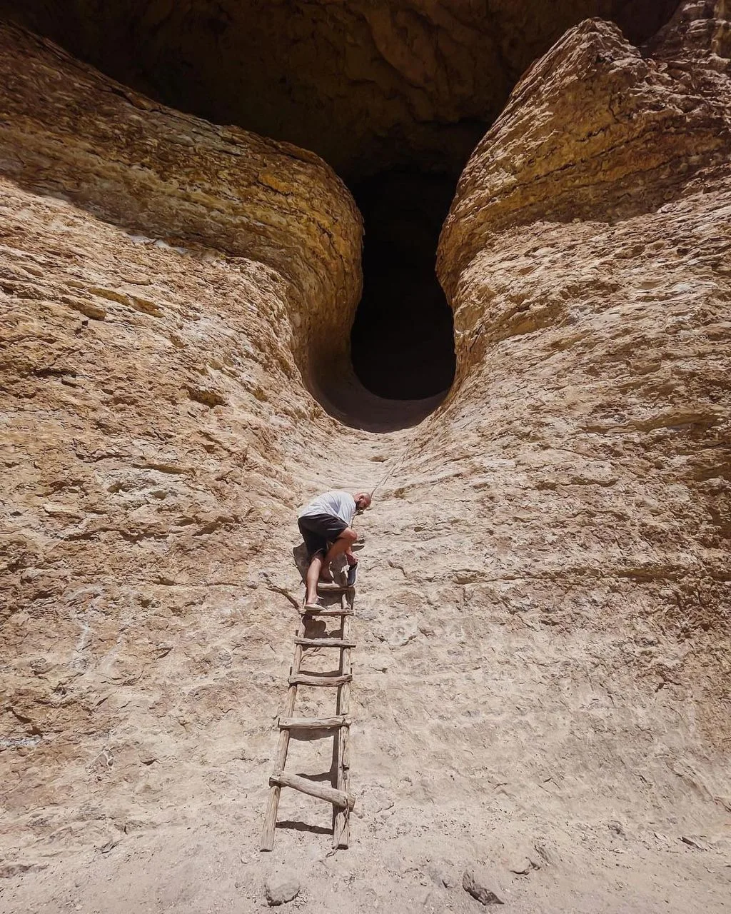 Чтобы попасть внутрь, придётся подниматься сначала по лестнице, затем по крутому склону с помощью верёвки. Небольшой участок проходит под углом около 60 градусов, остальная часть проще, примерно 35–45 градусов. Важно заранее позаботиться об удобной обуви и понимать свои силы. На вид всё кажется проще, чем есть на самом деле.