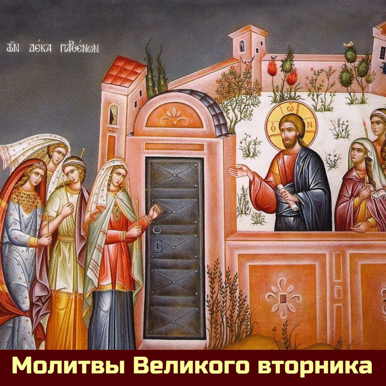 Се Жених грядет в полунощи,/ и блажен раб, Егоже обрящет бдяща,/ недостоин же паки, Егоже обрящет унывающа./ Блюди убо, душе моя,/ не сном отяготися,/ да не смерти предана будеши,/ и Царствия вне затворишися,/ но воспряни зовущи:/ Свят, Свят, Свят еси, Боже,// Богородицею помилуй нас.