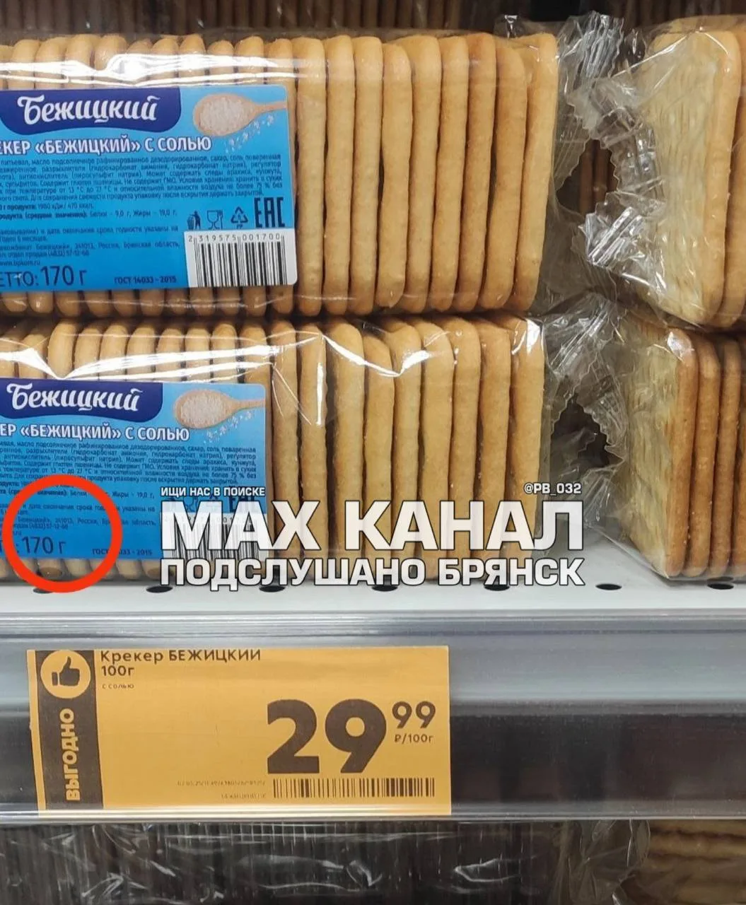 Пишут: Что творится с ценами. Поход в магазин Пятёрочка теперь превращается в экзамен по математике. Заводская пачка крекера весом 170 гр. , а цена указана на ценнике за 100 гр . Это чтобы покупатели шевелили мозгами? Задание:цену высчитай сам.