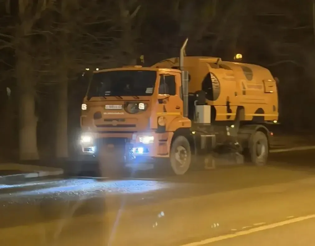 Городские службы вышли на механизированную уборку улиц — теперь пыль не просто сметают, а буквально всасывают.