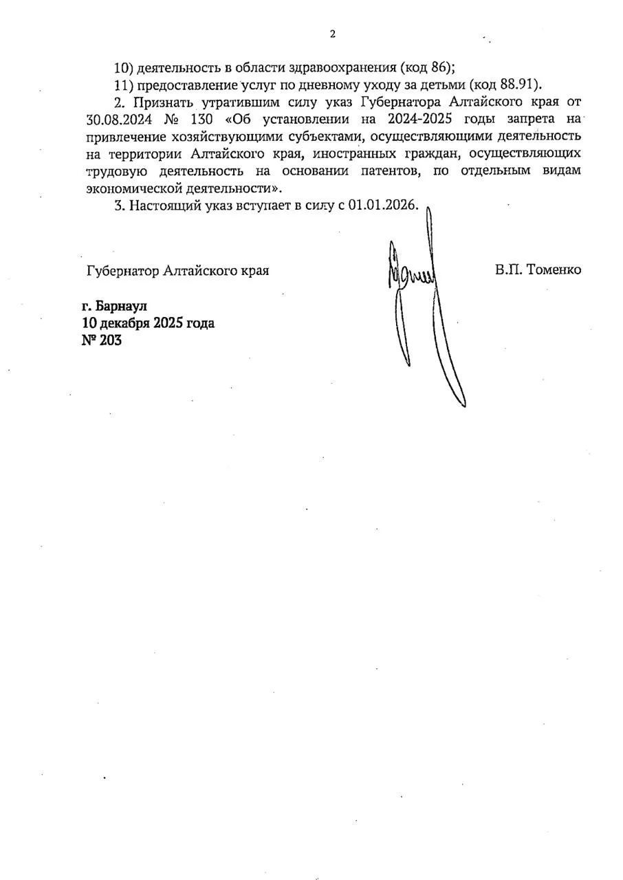 Губернатор Виктор Томенко продлил на 2026 год запрет на трудоустройство иностранцев по патенту.