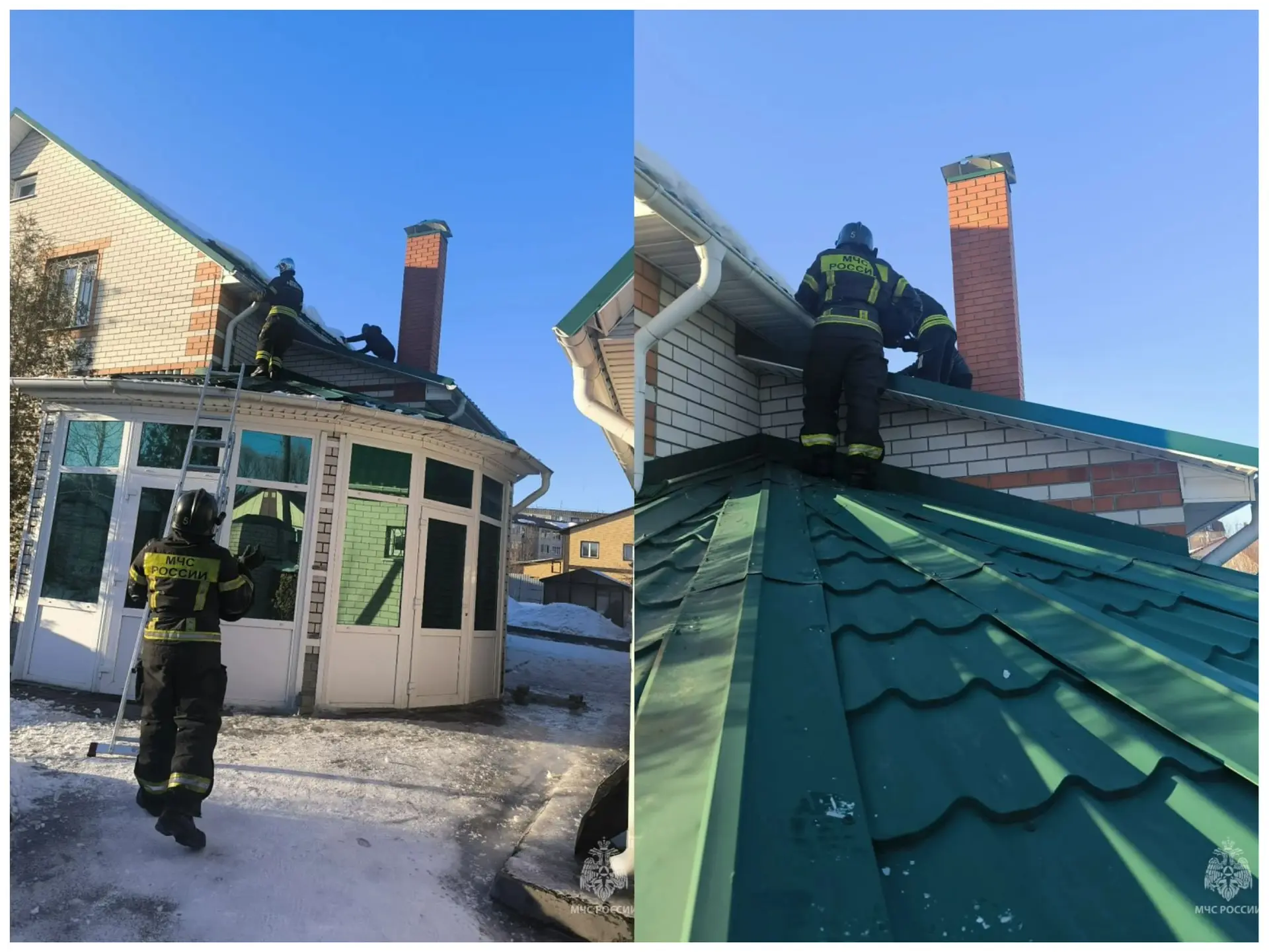 🚒❄️ В Барнауле пенсионер застрял на крыше частного дома