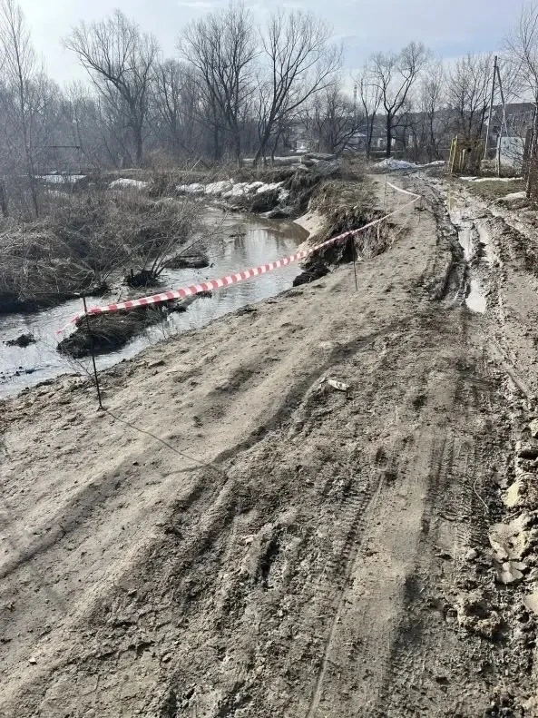 На улице Набережной из-за подмыва грунта разрушился участок дорожного полотна.