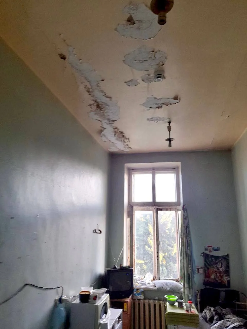 Помимо этого, один душ – люди, проходящие длительную терапию, не имеют возможности нормально помыться. 🪳 Ко всему этому добавляются тараканы и текущий потолок в некоторых палатах.