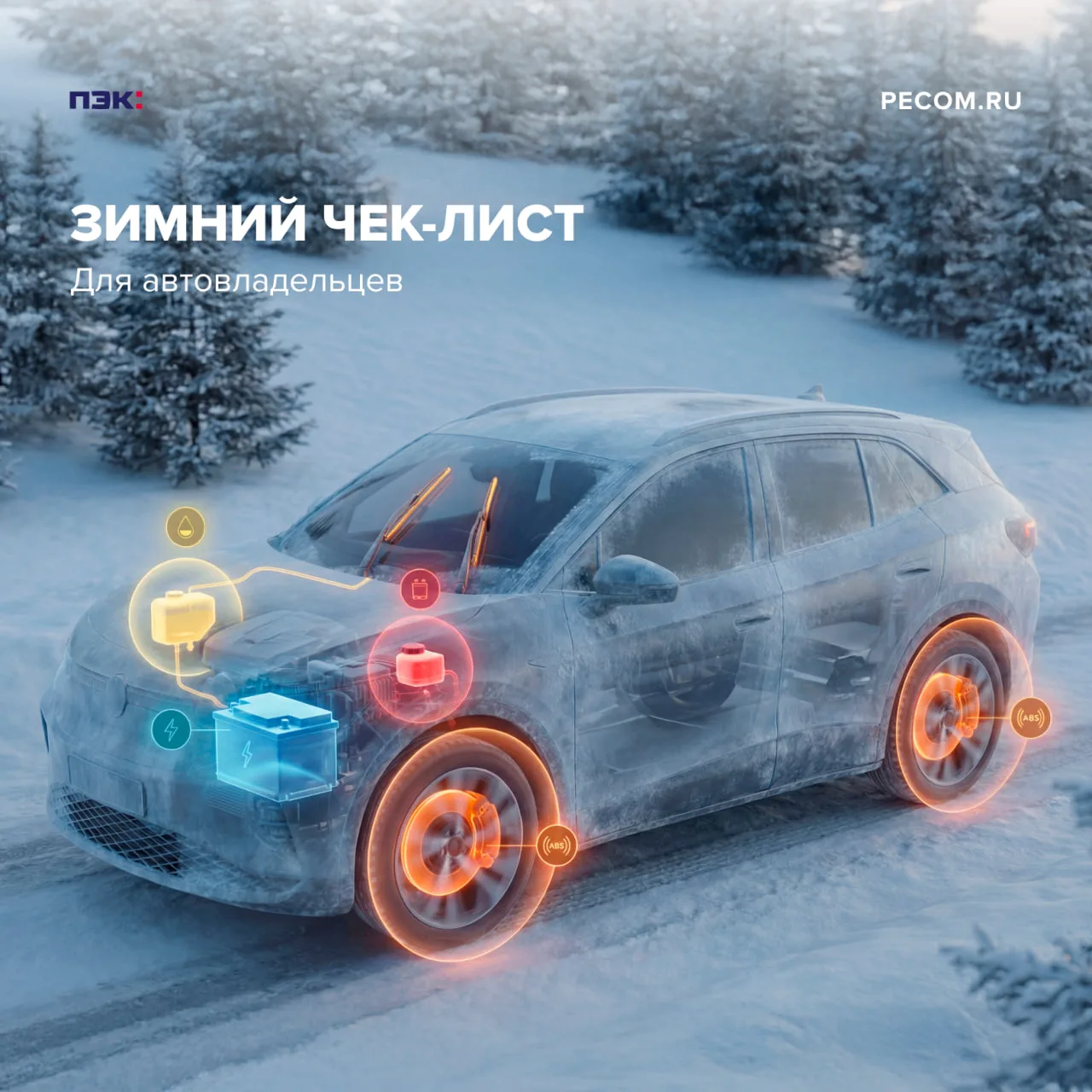 1️⃣ Перед поездкой убедитесь в исправности датчиков автомобиля, особенно — ABS, измеряющего скорость вращения колес и передающего данные в электронный блок управления для предотвращения блокировки колес при торможении. Мигание индикатора во время движения означает отключение системы из-за ошибки.
