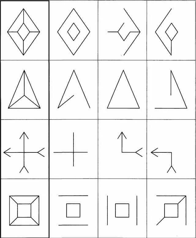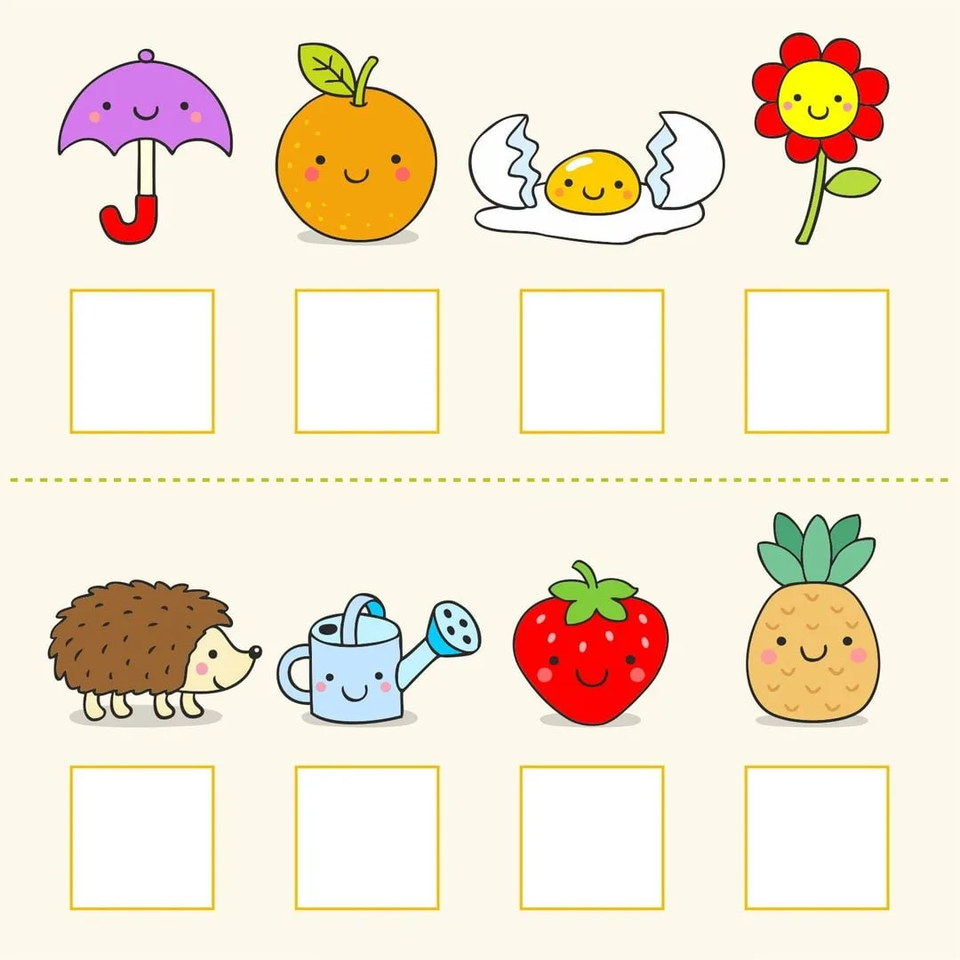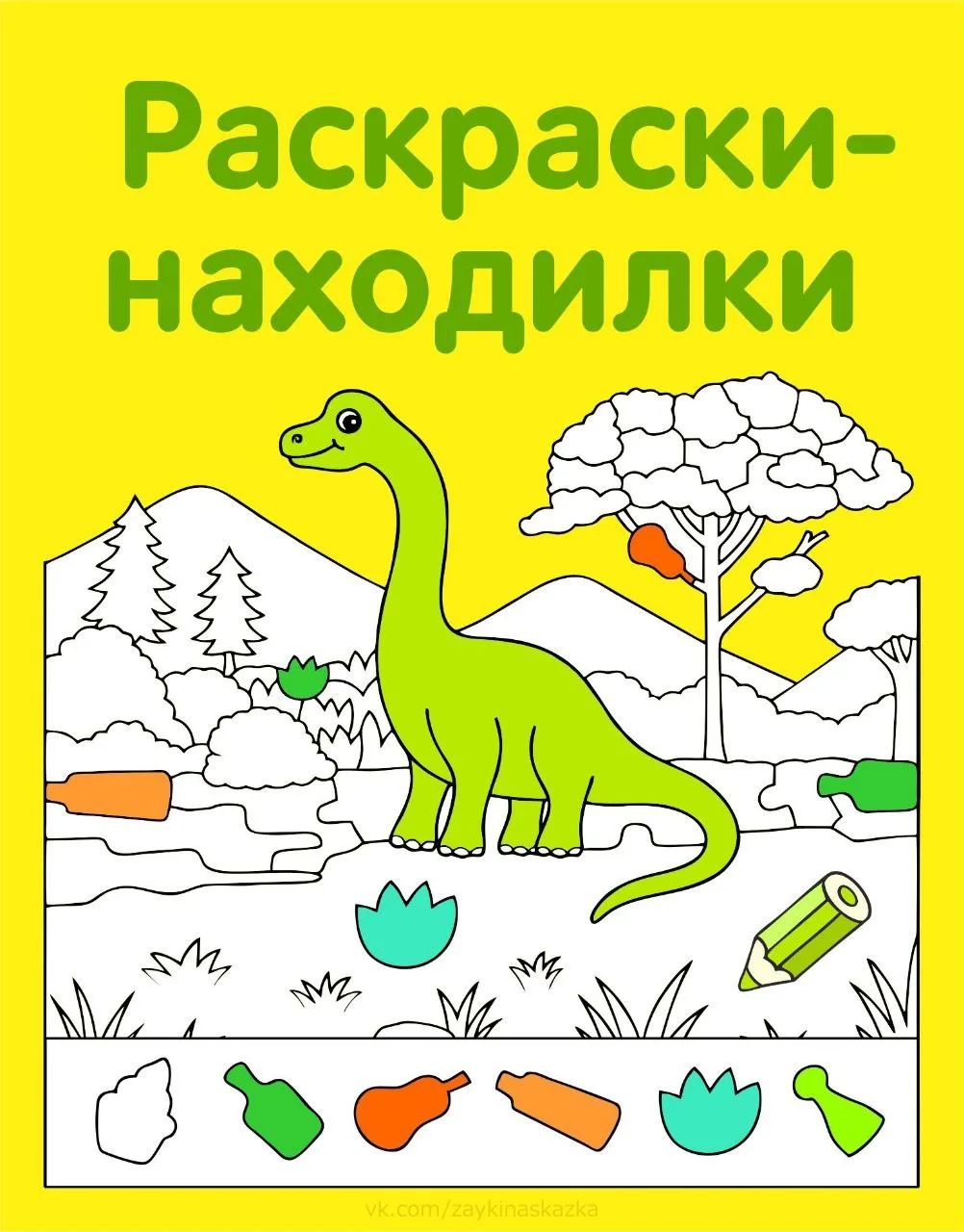 Дайте их детям и попросите найти внутри рисунка все спрятанные элементы (за полями рисунков снизу и сверху указано то, что нужно найти)