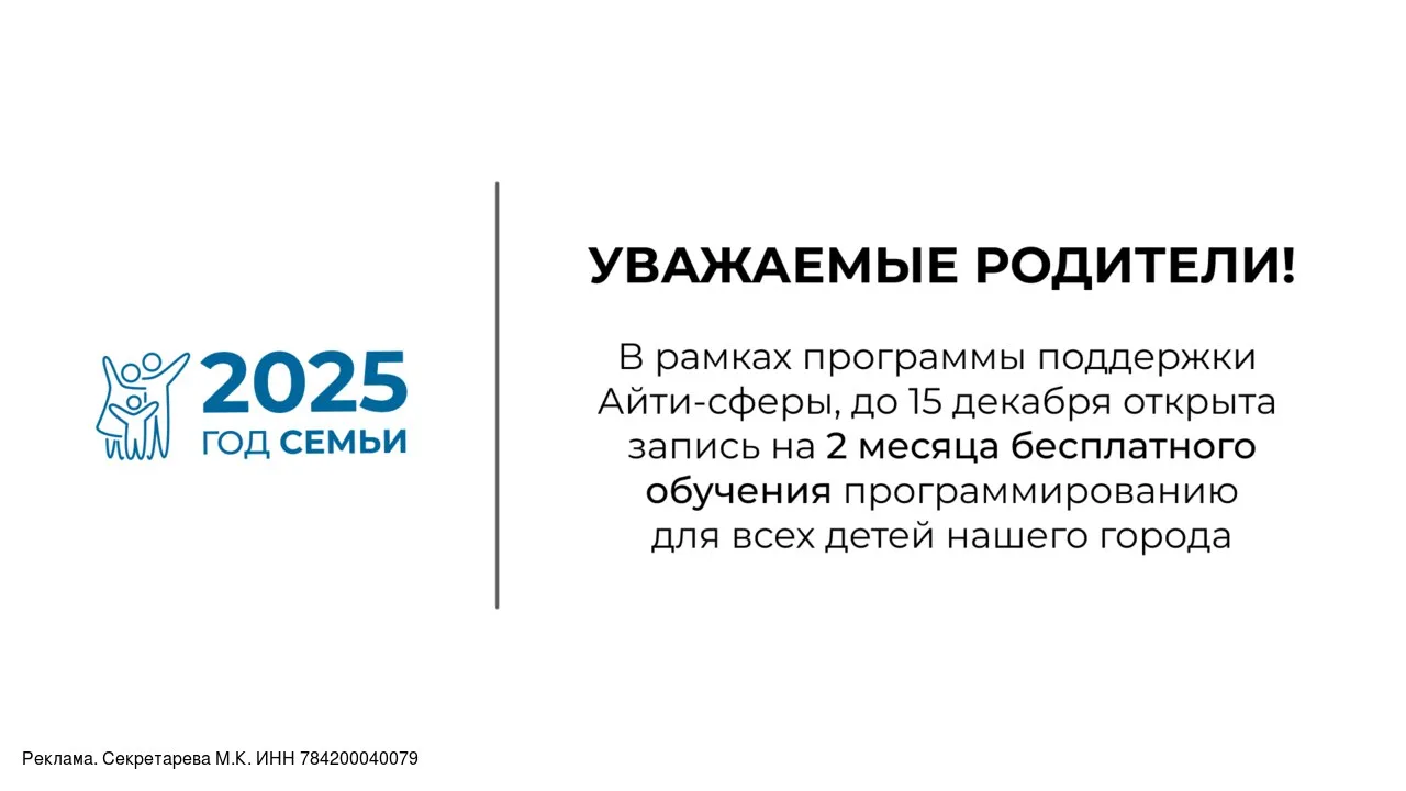 📅 С 1 декабря любой школьник РФ может получить 2 месяца бесплатного обучения в Айти: стать программистом, улучшить успеваемость, создать свой первый сайт и игру.