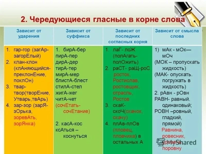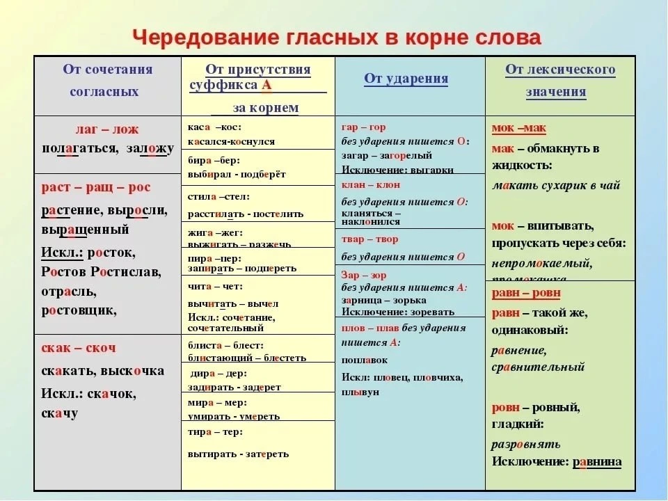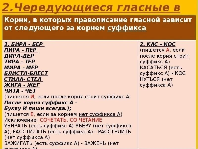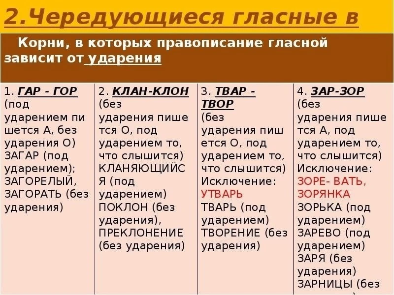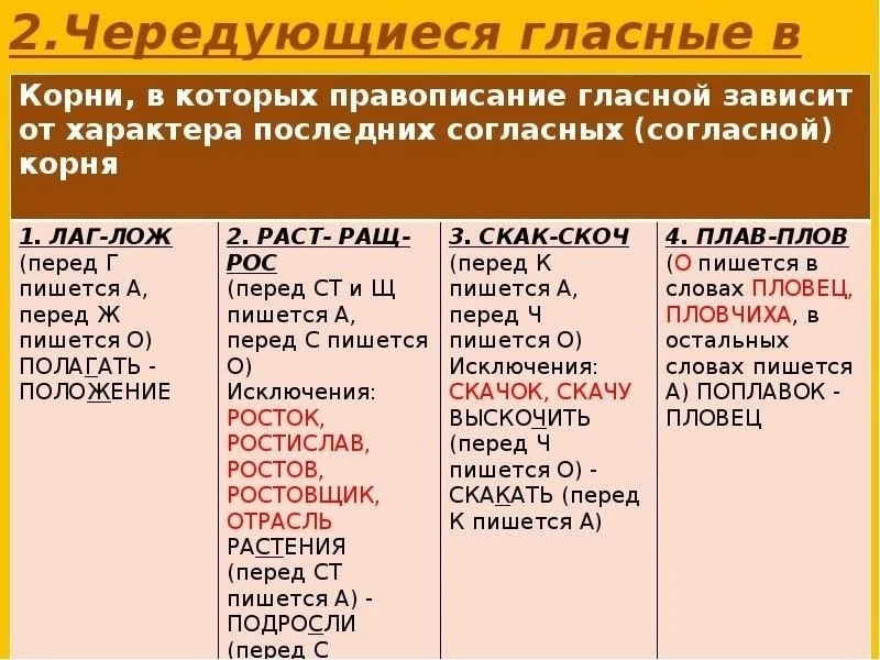 Чередование гласных в корнях слов