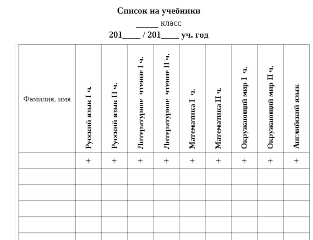 Список на учебники