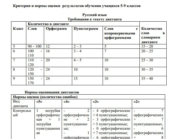 Критерии и нормы оценки результатов обучения учащихся 5-9 классов