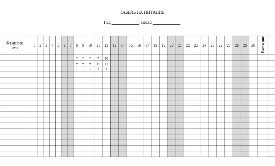 Табель на питание