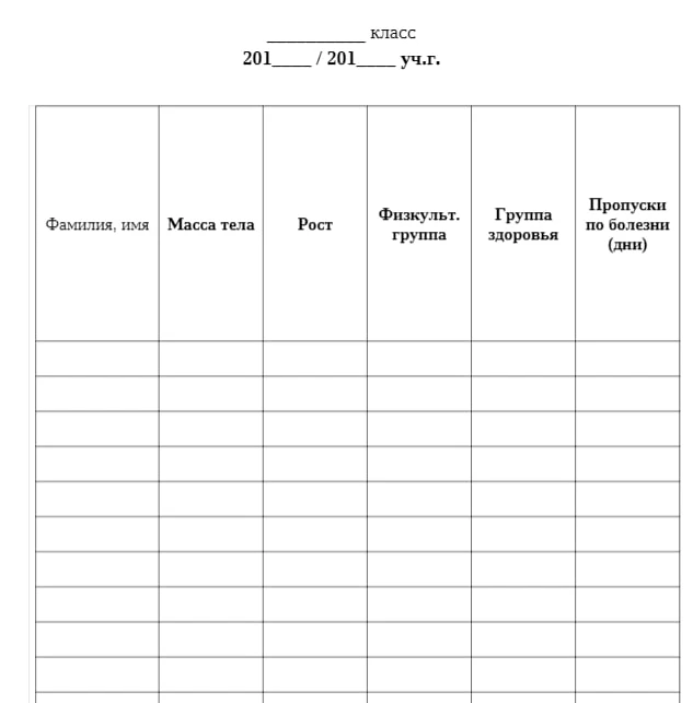 Список рост и вес