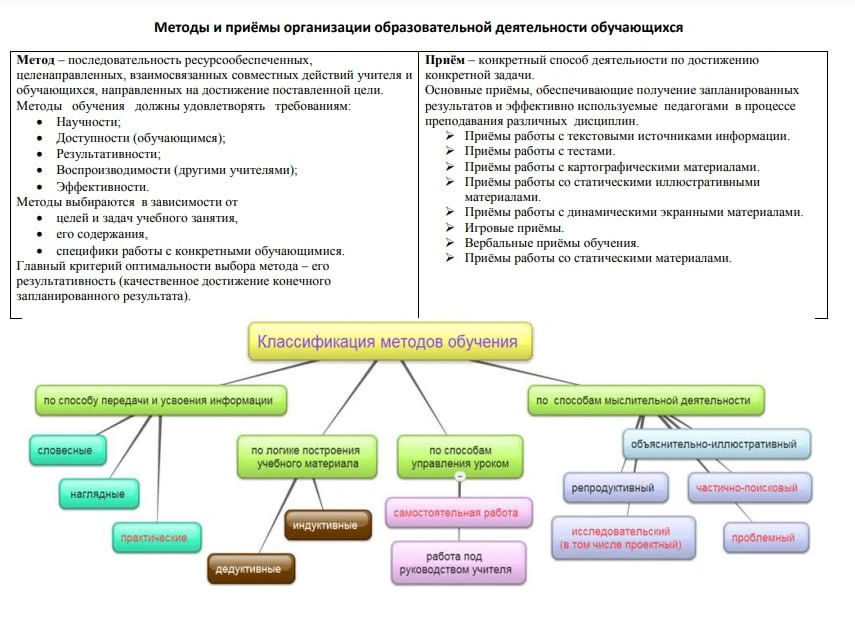 Методы и приёмы организации образовательной деятельности обучающихся