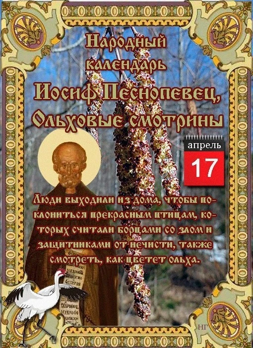 17 апреля 2026 года отмечается день Иосифа Песнопевца, посвященный святому, жившему в 9 веке на Сицилии и известному составлением богослужебных песнопений.