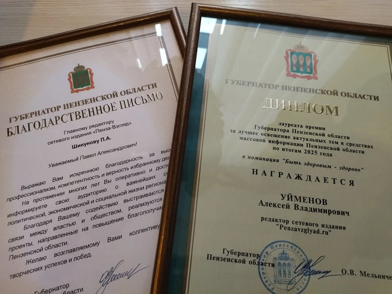 Диплом лауреата премии губернатора Пензенской области за лучшее освещение актуальных тем в СМИ по итогам 2025 года в номинации «Быть здоровым — здорово» получил редактор «Пенза-Взгляд» Алексей Уйменов.