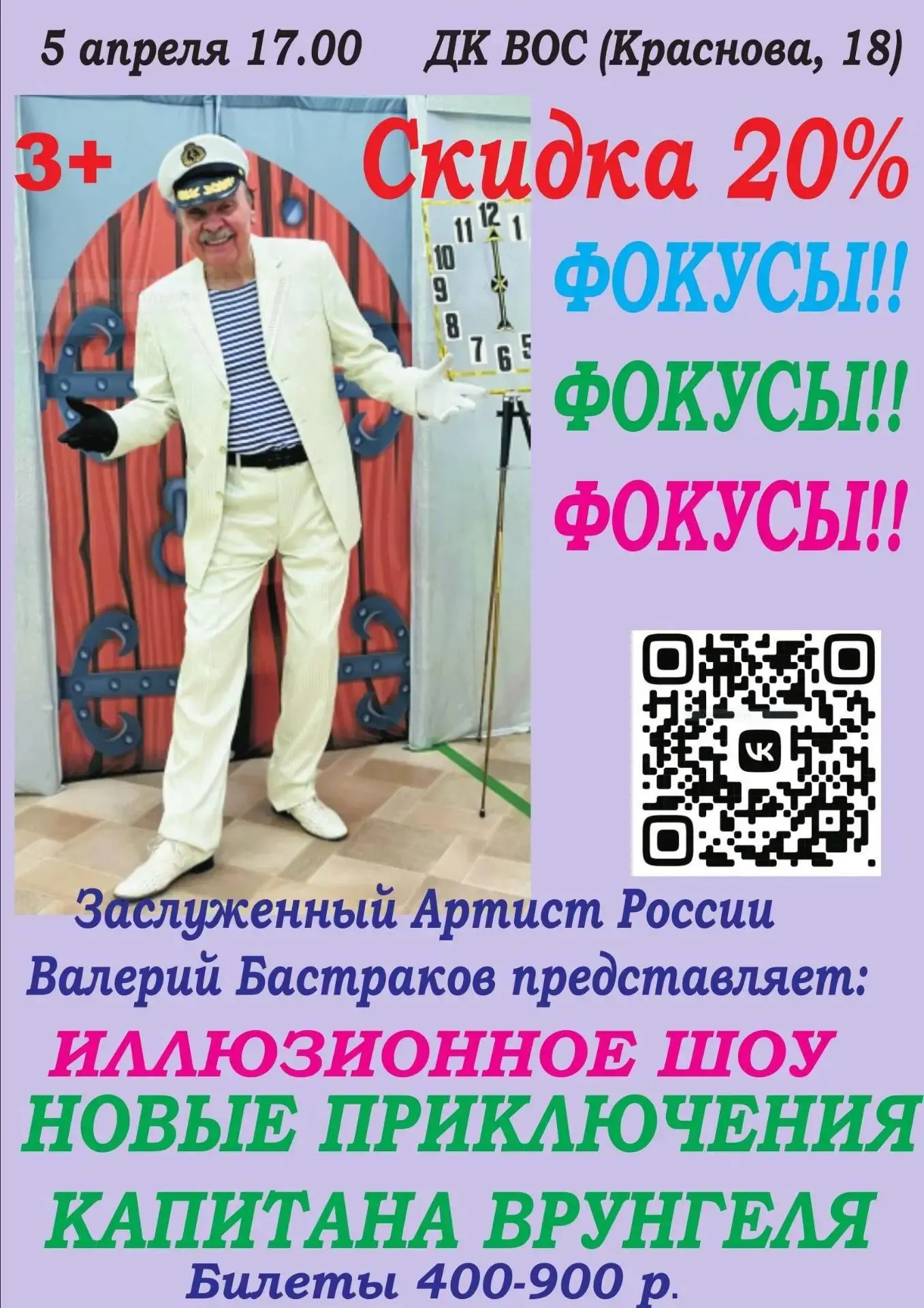 Иллюзионное представление одного из лучших фокусников России, Заслуженного артиста России, номинанта на строгановскую премию 2026 г.,- Валерия Бастракова. На его концертах в восторге все, - и взрослые, и дети.