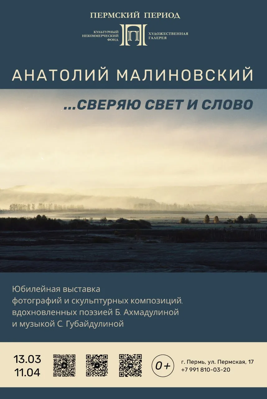 🔹До 11 апреля - Юбилейная персональная выставка фотохудожника Анатолия Малиновского «Сверяю свет и слово»