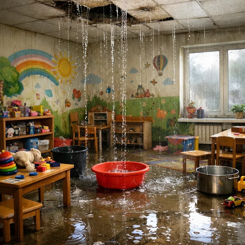 Кровля одного из корпусов протекает, что приводит к затоплению помещений и разрушению конструкций. Несмотря на это, ремонт не организован. Родителей уведомили о закрытии учреждения, с чем они не согласны, поскольку ближайший детский сад расположен на значительном расстоянии. Обращения в профильные структуры результатов не принесли.