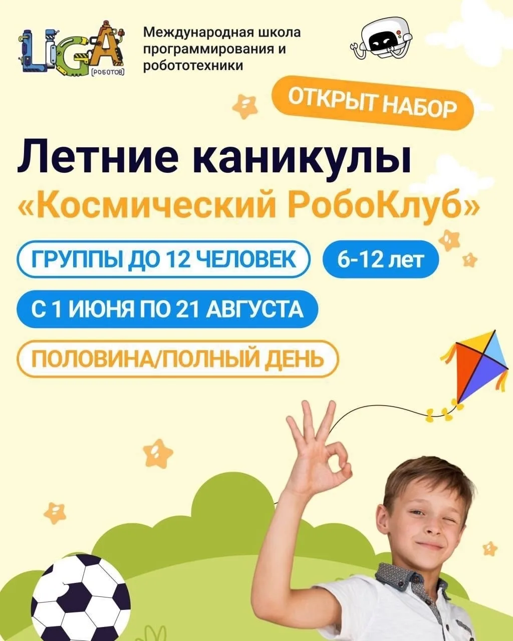 Приглашаем ребят от 6 до 12 лет в Летний городской РобоКлуб: Космические каникулы с Лигой роботов! 🔥