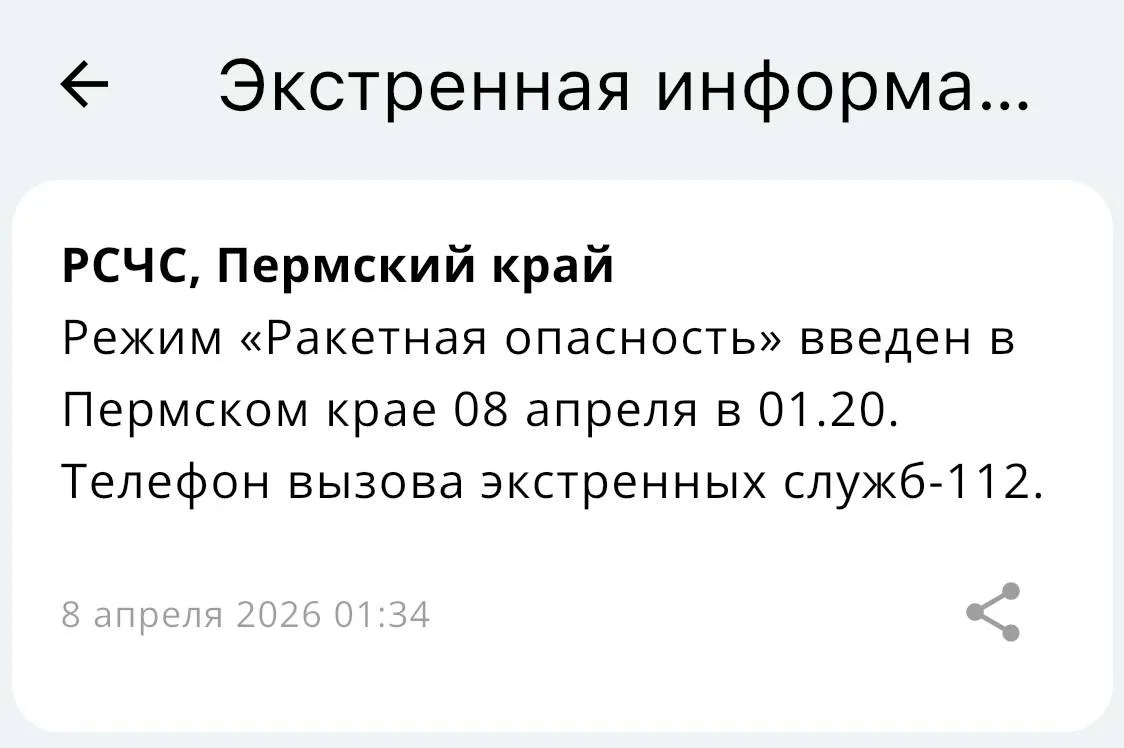 ❗«Ракетная опасность» введена в Пермском крае! Сигнал подается, когда существует непосредственная угроза удара ракетами по территории — в том числе с боевыми частями.