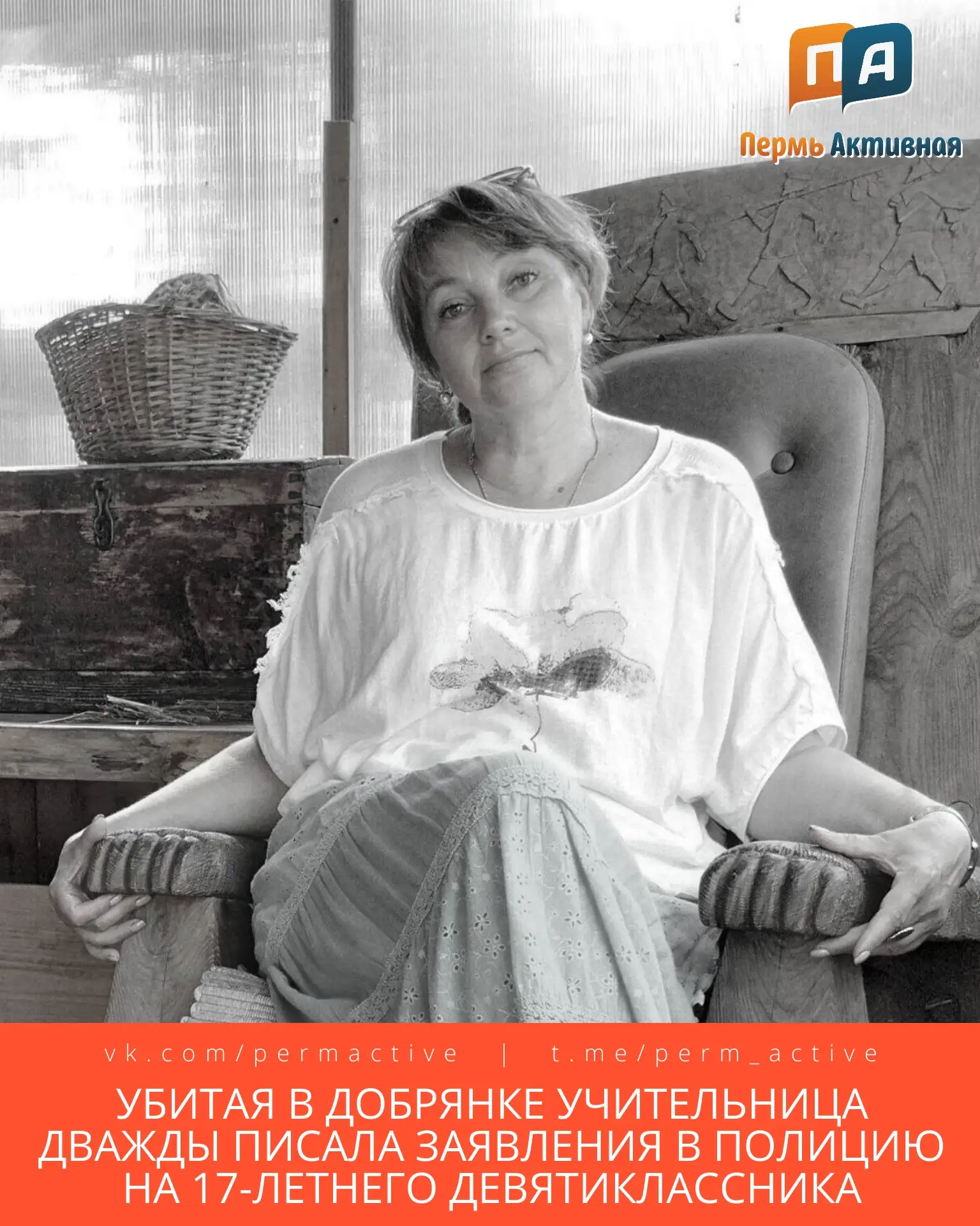 😰 Убитая в Добрянке учительница дважды писала заявления в полицию на 17-летнего девятиклассника. Сначала Олеся Багута обращалась из-за оскорблений, затем — за клевету: подросток в соцсетях обвинял её в наркомании, его допрашивали, но дальше дело не пошло.