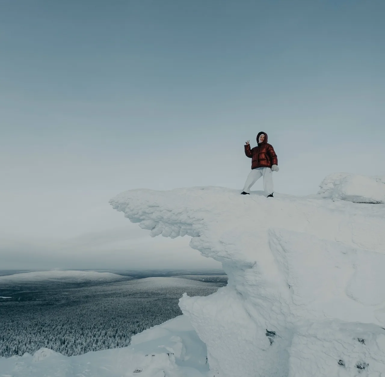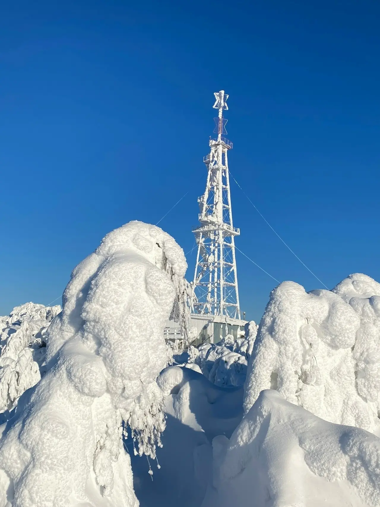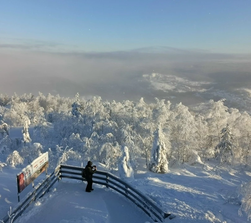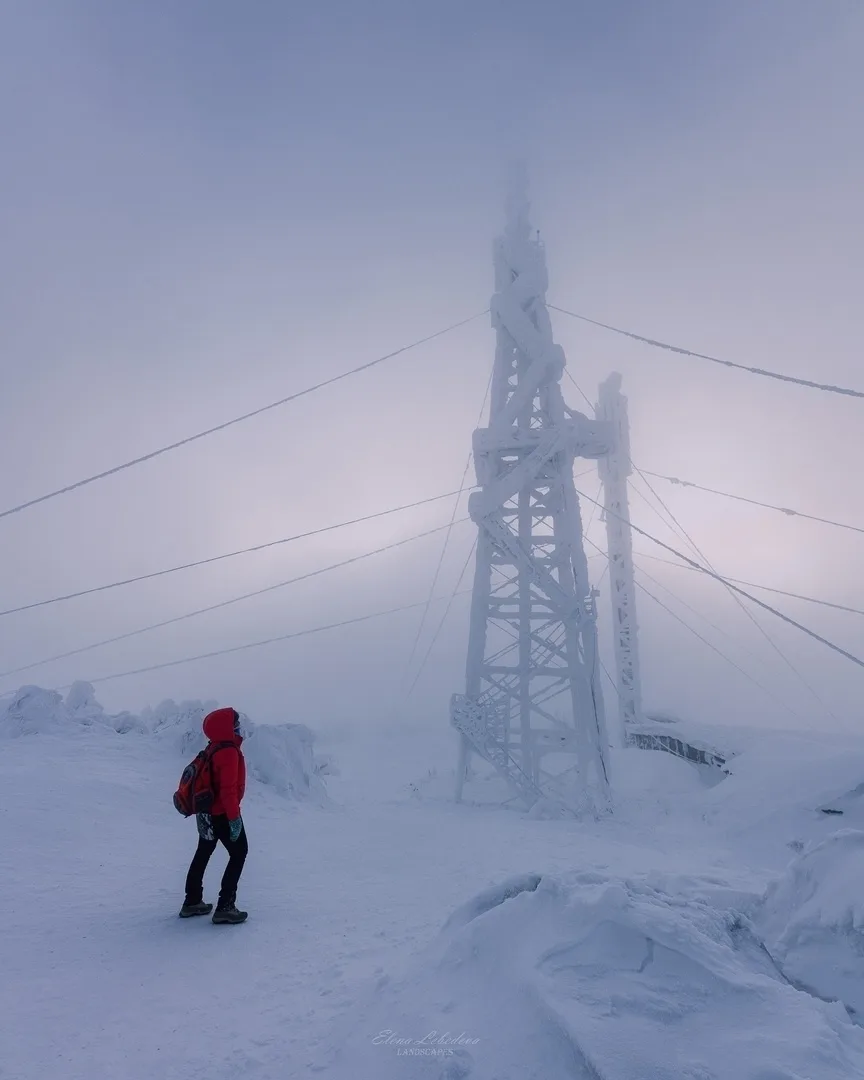 В морозном тумане. Рассвет на горе Полюд, Пермский край
