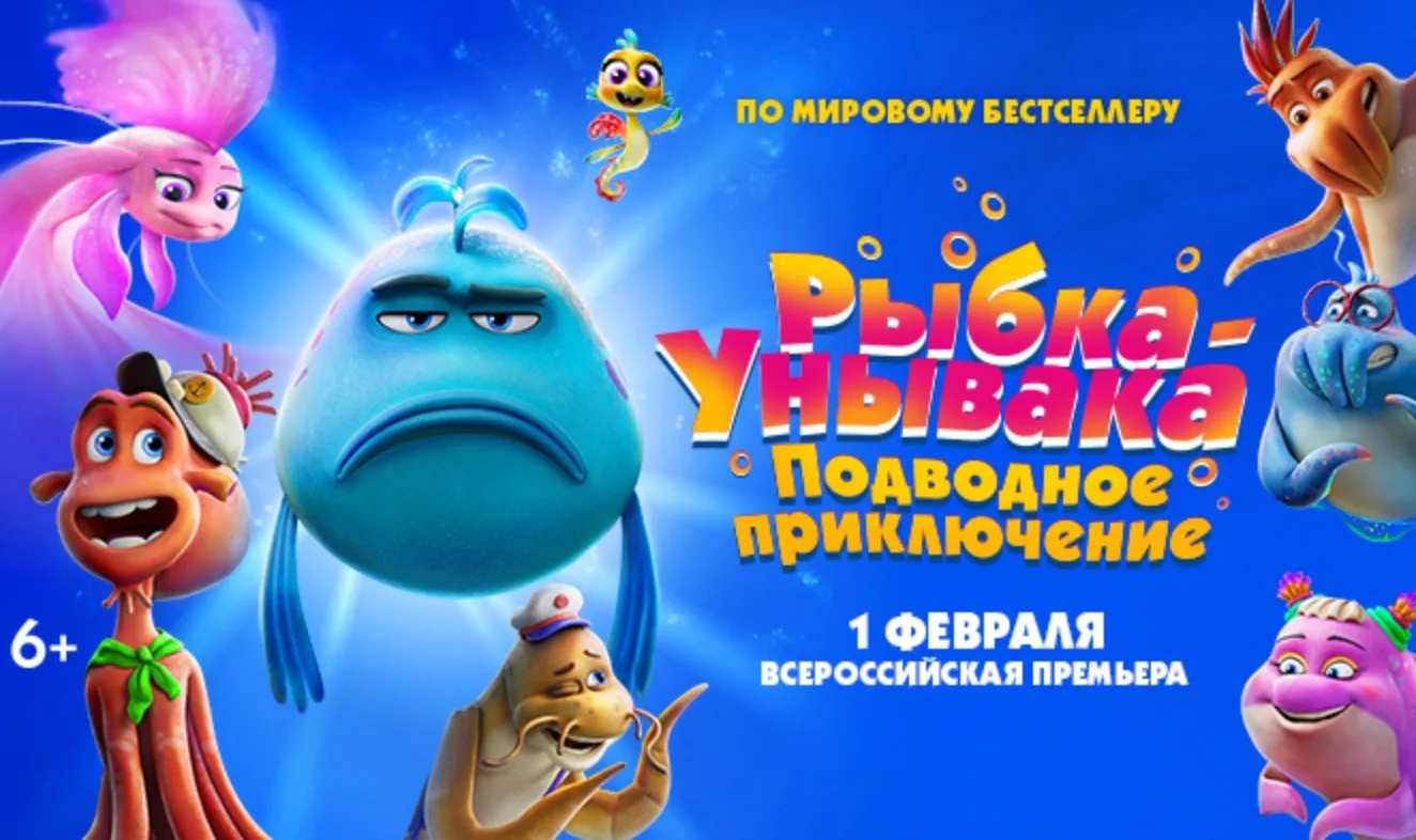 1 февраля Сеть кинотеатров «Синема Парк» приглашает на всероссийскую премьеру анимационного приключения для всей семьи «Рыбка унывака. Подводное приключение». Это проект, основанный на мировом бестселлере Деборы Дисен «Рыбка-унывака». Книга вошла в список бестселлеров Нью-Йорк Таймс, была книгой №1 на Амазон, а также вошла в ТОП-10 лучших детских книг по версии журнала TIME. Всего в мире продано более 10 миллионов проданных книг, в том числе издания на русском языке.