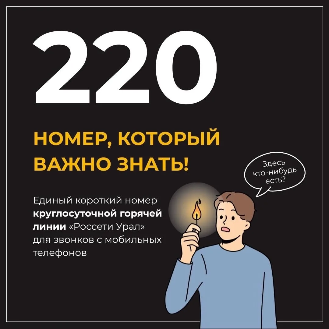 Компания «Россети Урал» запустила единый короткий номер круглосуточной горячей линии для звонков с мобильных телефонов – 220.