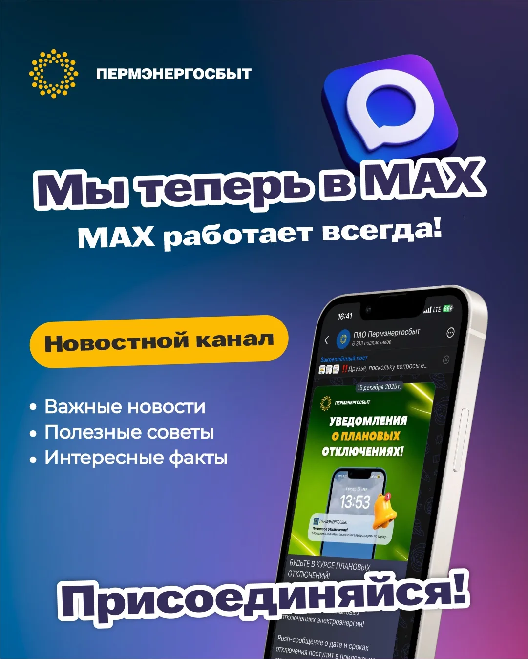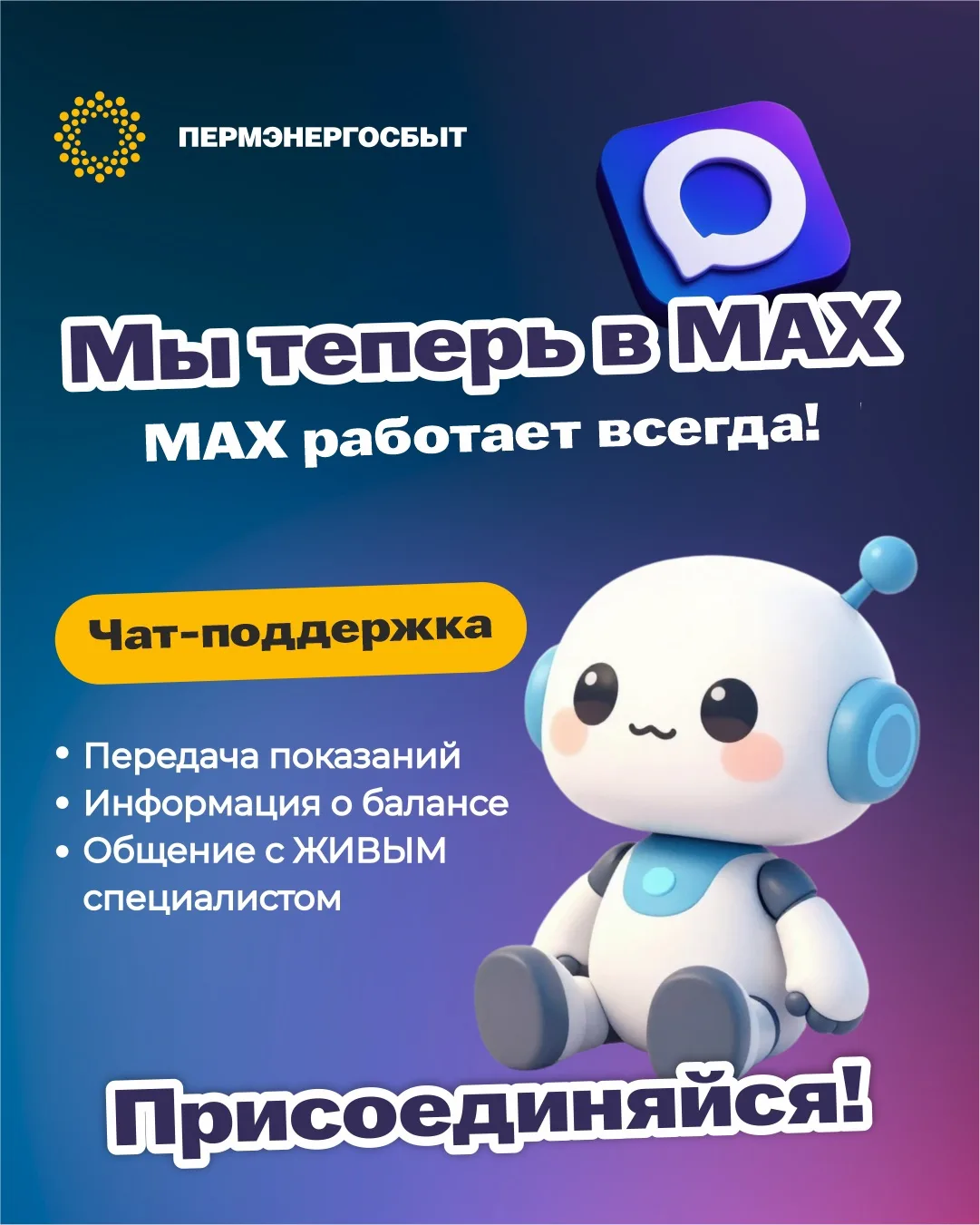 ▪️С помощью чат-бота Пермэнергосбыт в MAX